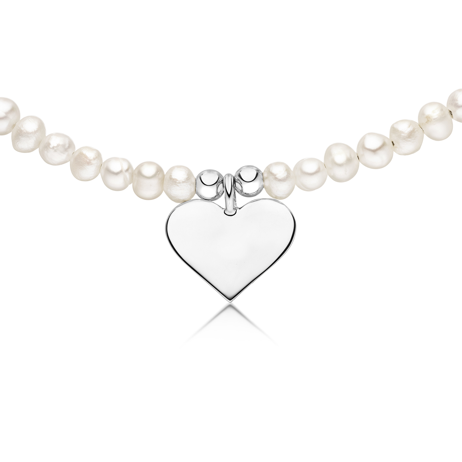 In diesem Angebot bieten wir Ihnen ein Perlenarmband an, welches mit zahlreichen naturweißen Süßwasserzuchtperlen und 2 Silber Kugeln bestückt wurde. Zusätzlich ziert dieses Armband ein Herz Anhänger aus massivem 925 Sterling Silber. Das Armband ist größenverstellbar von 17,5-20cm.