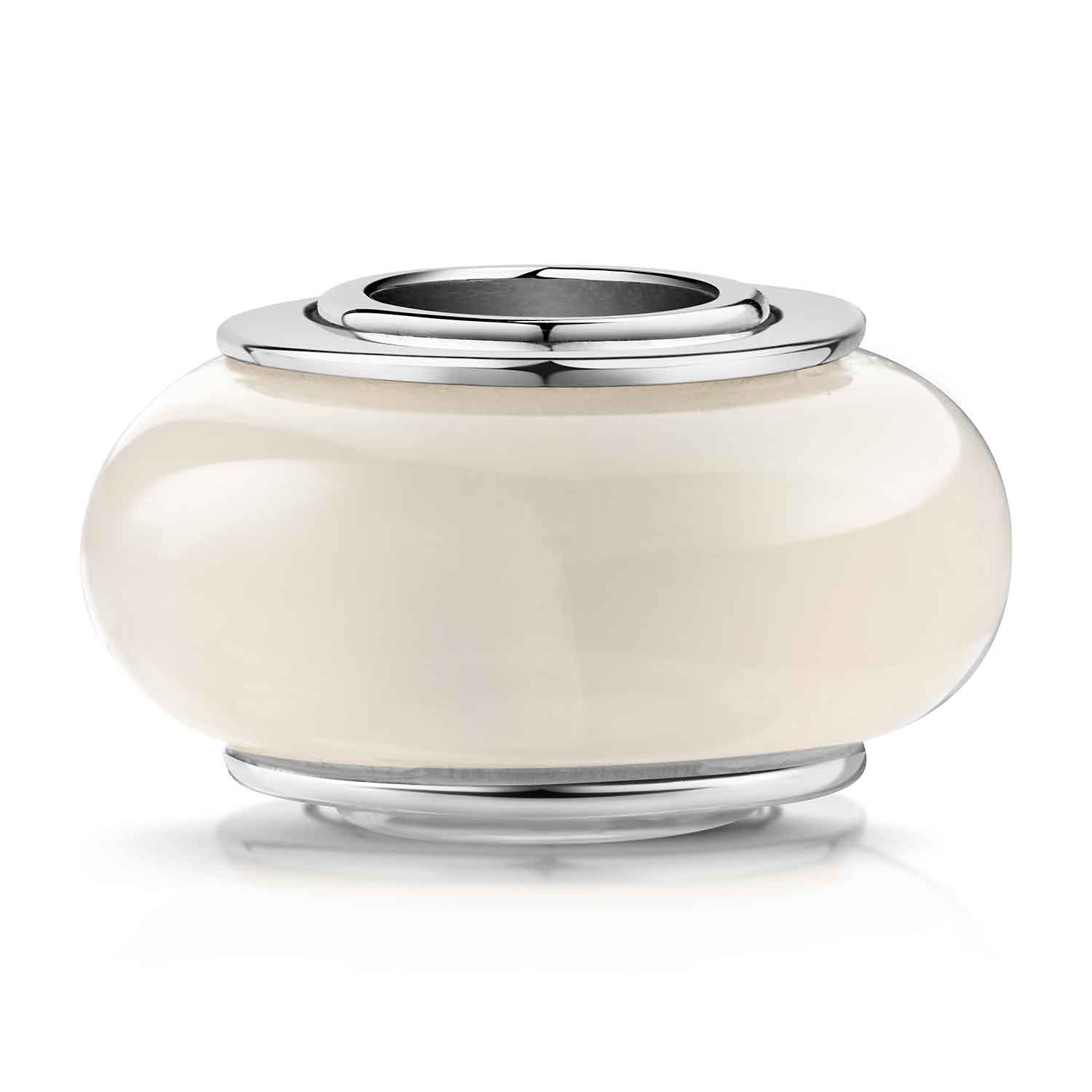 Dieser schöne Edelstein Bead aus echtem Regenbogen Mondstein schimmert sanft unter Lichteinfall. Das Schmuckstück ist mit einer massiven und breiten Hülse aus 925 Sterling Silber ausgestattet und passt auf alle gängigen Beads Armbändern und Ketten bis max. 4,4mm Breite.