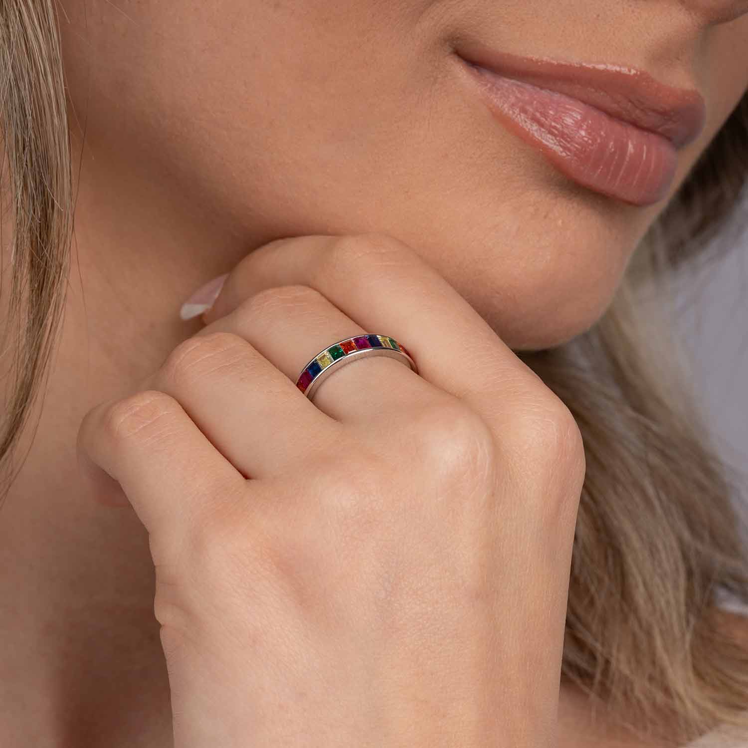 Entdecken Sie den bezaubernden Damenring mit bunten Steinen, der jedem Outfit einen Hauch von Farbe und Eleganz verleiht. Dieser exquisite Ring ist nicht nur ein Schmuckstück, sondern ein Ausdruck Ihrer Persönlichkeit und Ihres Stils. Mit seinem einzigartigen Motiv, das an einen Regenbogen erinnert, zieht er alle Blicke auf sich und setzt farbenfrohe Akzente.
