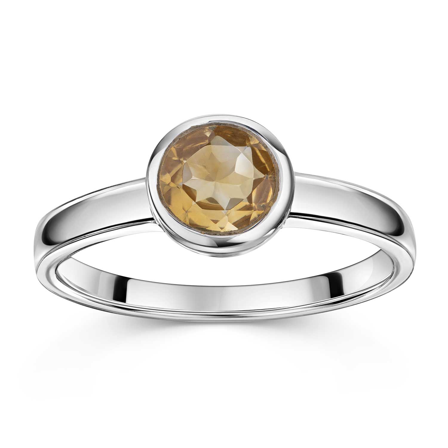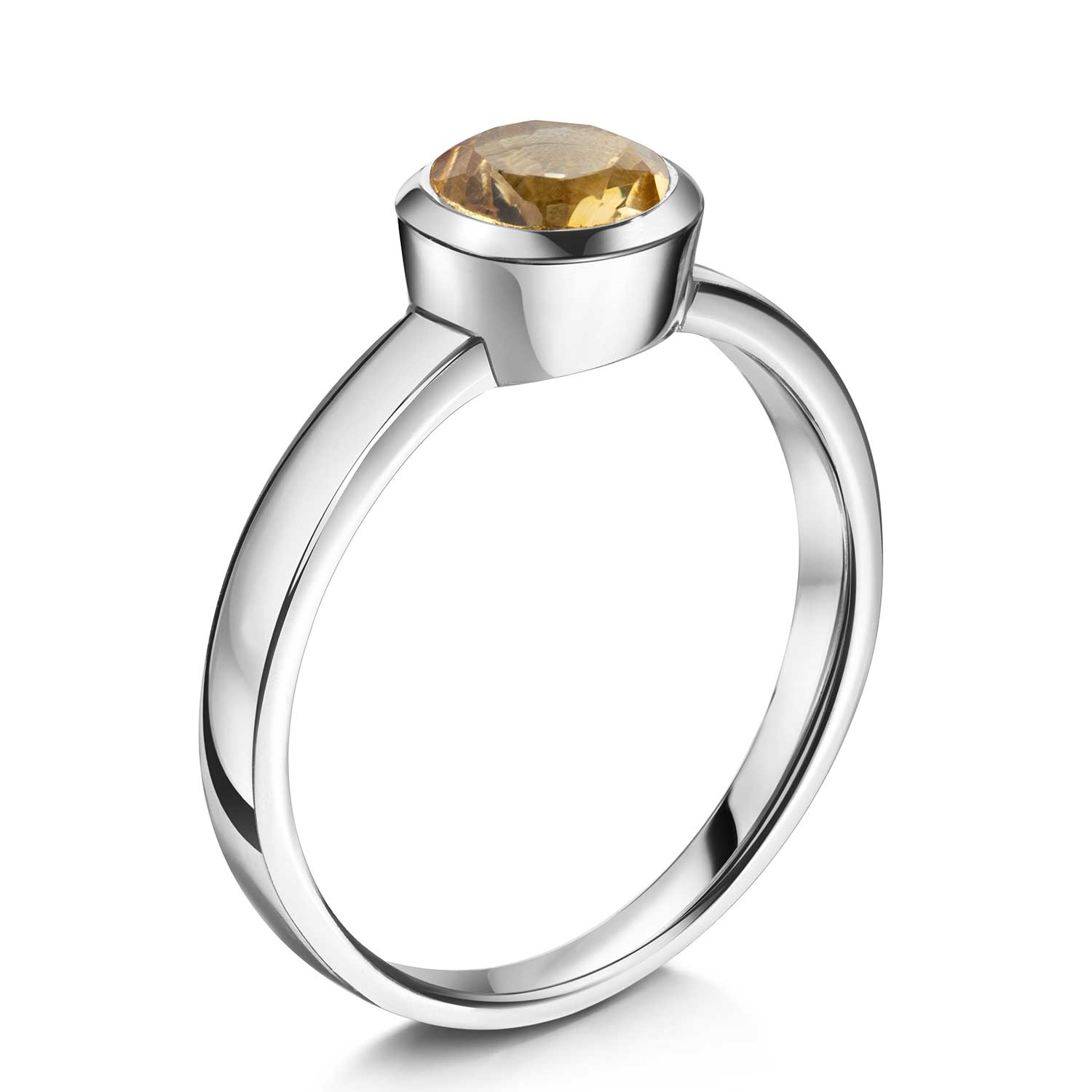Für einen eleganten und doch dezenten Look sorgt unser runder Ring aus 925 Sterling Silber, der mittig mit einem facettierten Citrin geschmückt ist. Der Edelstein Ring passt sowohl zur Alltags-, als auch zur Abendgarderobe.