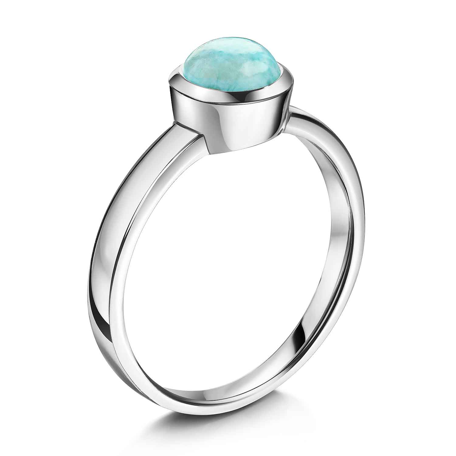 Klassischer Damenring aus 925 Sterling Silber mit einem Larimar Stein im Cabochon-Schliff.