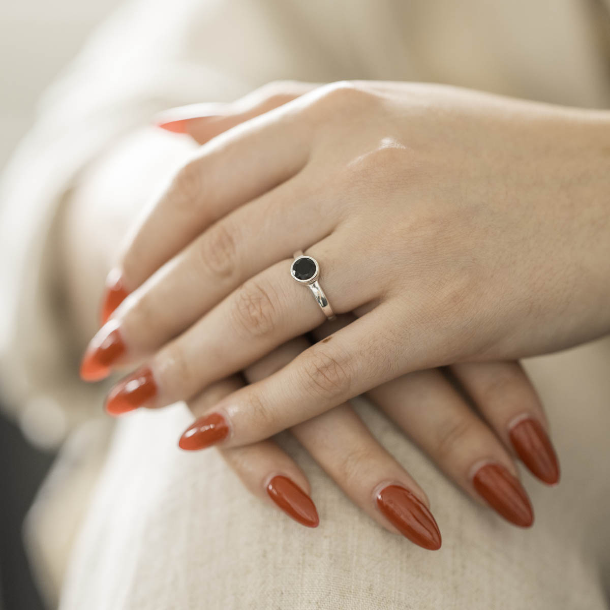 Für einen eleganten und doch dezenten Look sorgt unser runder Ring aus 925 Sterling Silber, der mittig mit einem facettierten Onyx Stein geschmückt ist. Der Edelstein Ring passt sowohl zur Alltags-, als auch zur Abendgarderobe.