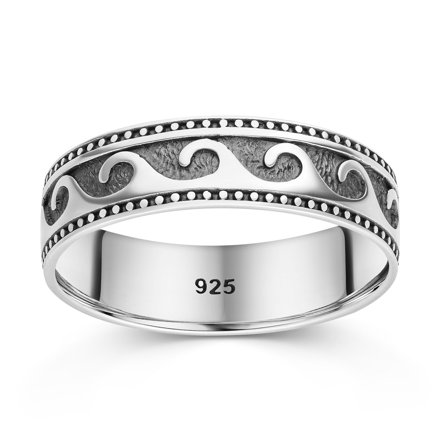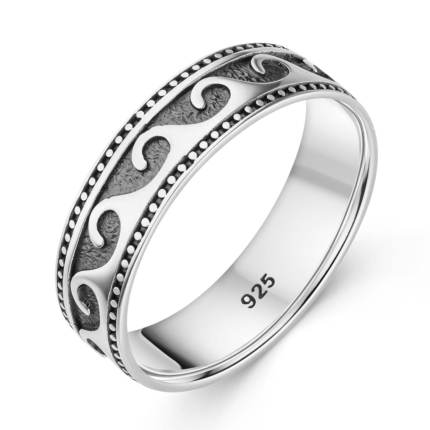Hergestellt aus 925 Sterling Silber, erfüllt dieser Ring höchste Qualitätsstandards. Der 925 Silber Stempel garantiert die Echtheit des Materials und sorgt dafür, dass Sie lange Freude an diesem Schmuckstück haben werden. Die antik oxidierte und geschwärzte Oberfläche verleiht dem Damenring einen zeitlosen, vintage Charme, der ihn von herkömmlichem Schmuck abhebt. Die besondere Oberflächenbehandlung sorgt dafür, dass die Wellenstruktur hervorragend zur Geltung kommt und das Licht auf faszinierende Weise reflektiert wird.