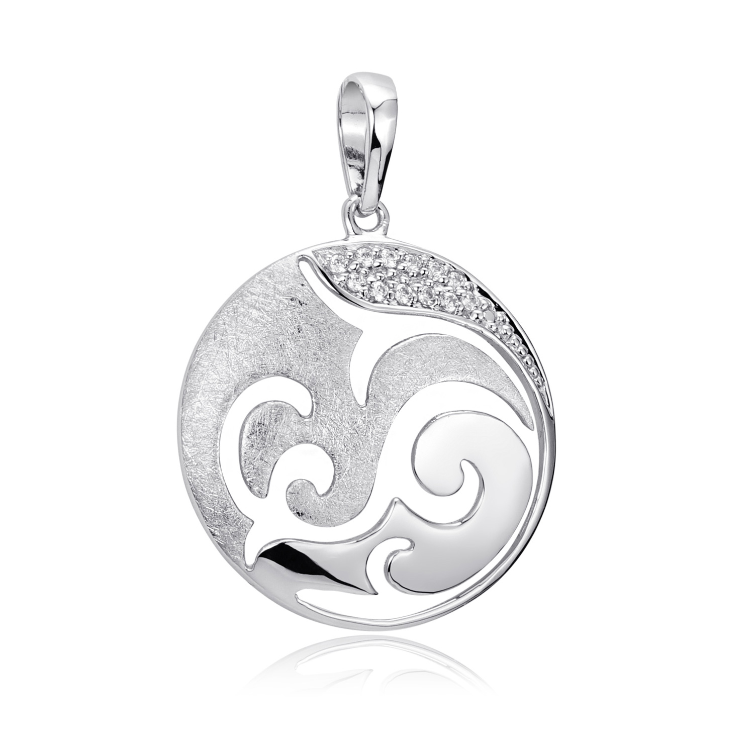 Unser Kettenanhänger verbindet außergewöhnliche Qualität und Liebe zum Detail. Ein durchbrochenes florales Motiv hebt sich vom Silber ab, das z.T. hochglanzpoliert und mattiert ist, dabei setzen 12 weiße Zirkonia glitzernde Akzente. Passend dazu bieten wir Ihnen ein Paar Ohrstecker unter Modellnummer SO-388-silber an.