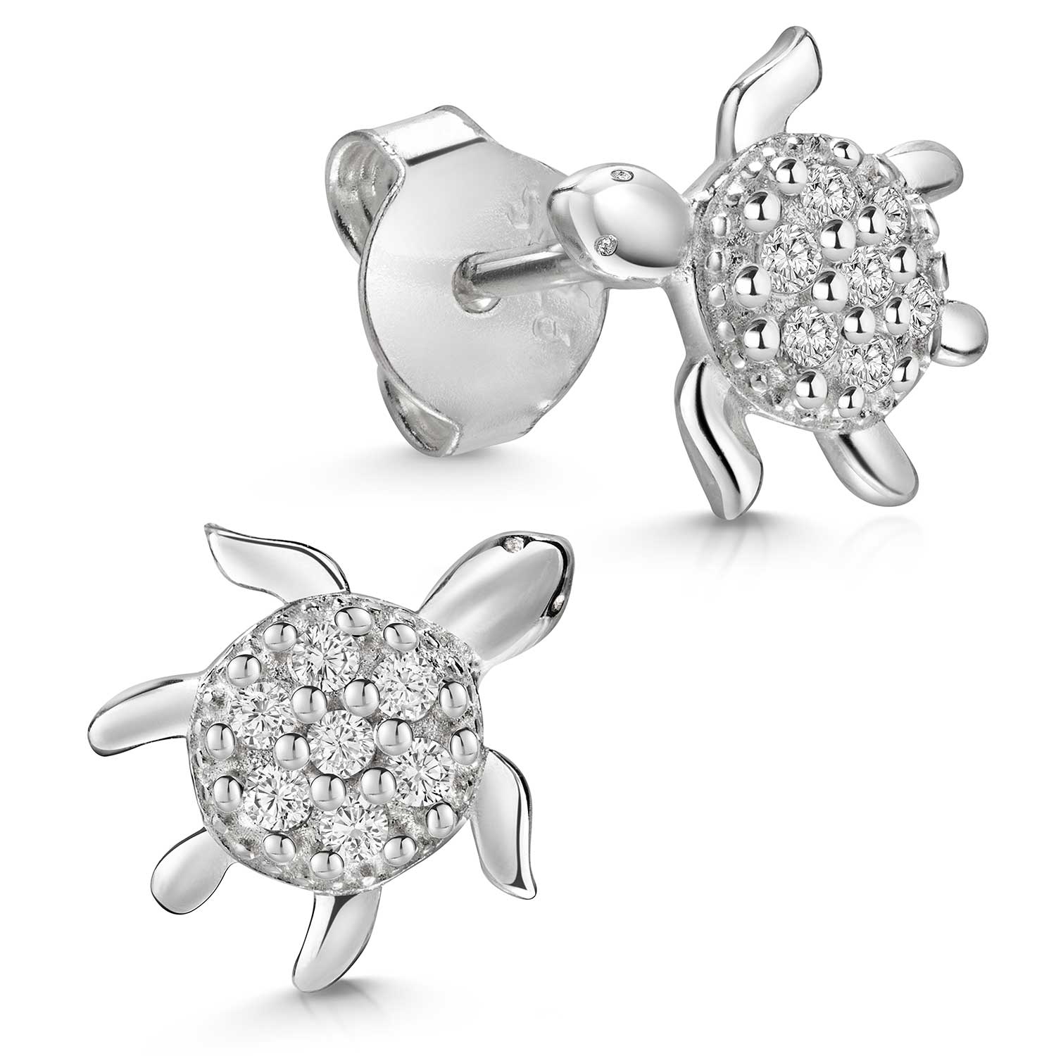 Funkelnde Damen Ohrringe mit Schildkröten-Motiv aus 925 Sterling Silber mit weißen Zirkonia Steinen.