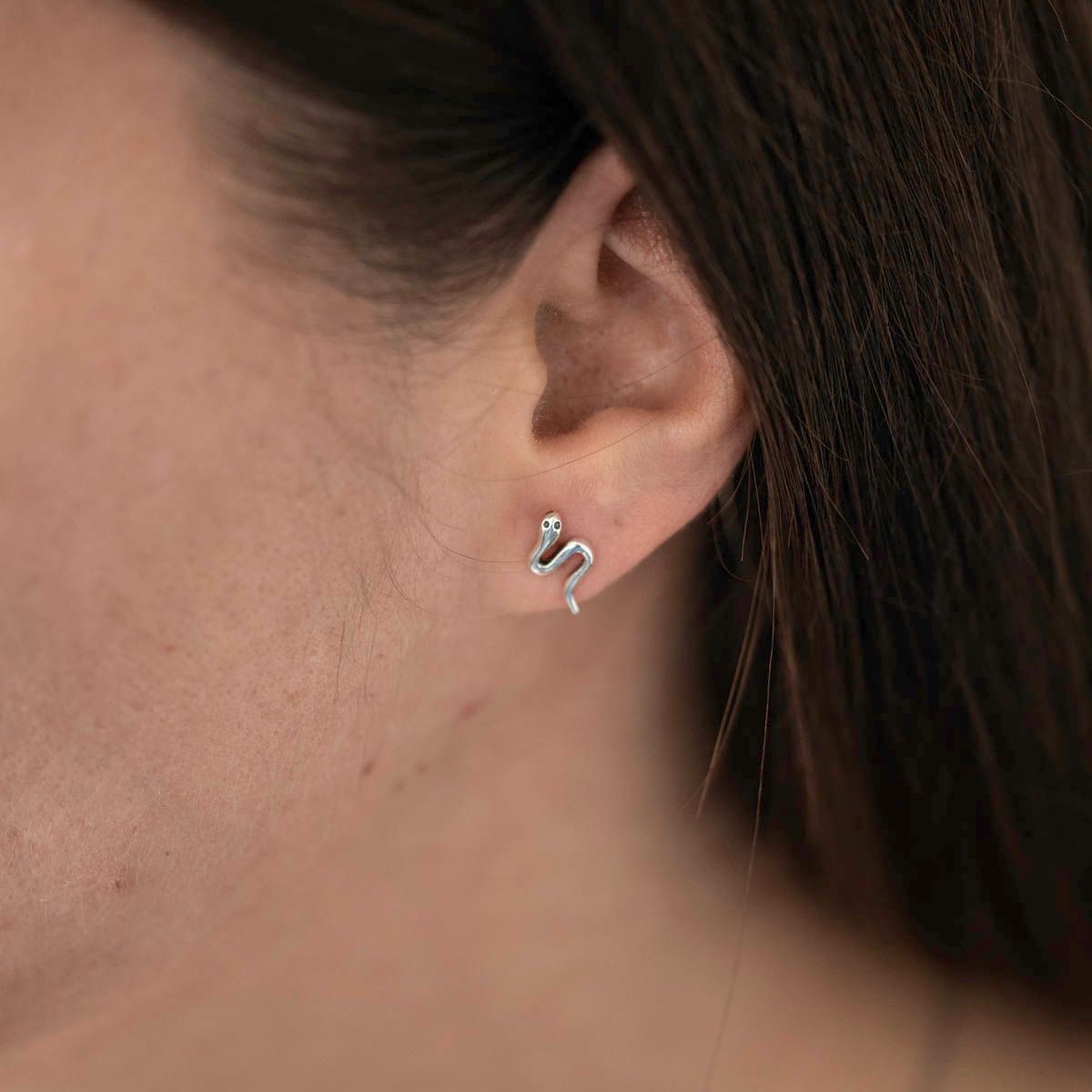 Dezente kleine Ohrstecker in Form einer Schlange aus 925 Sterling Silber.