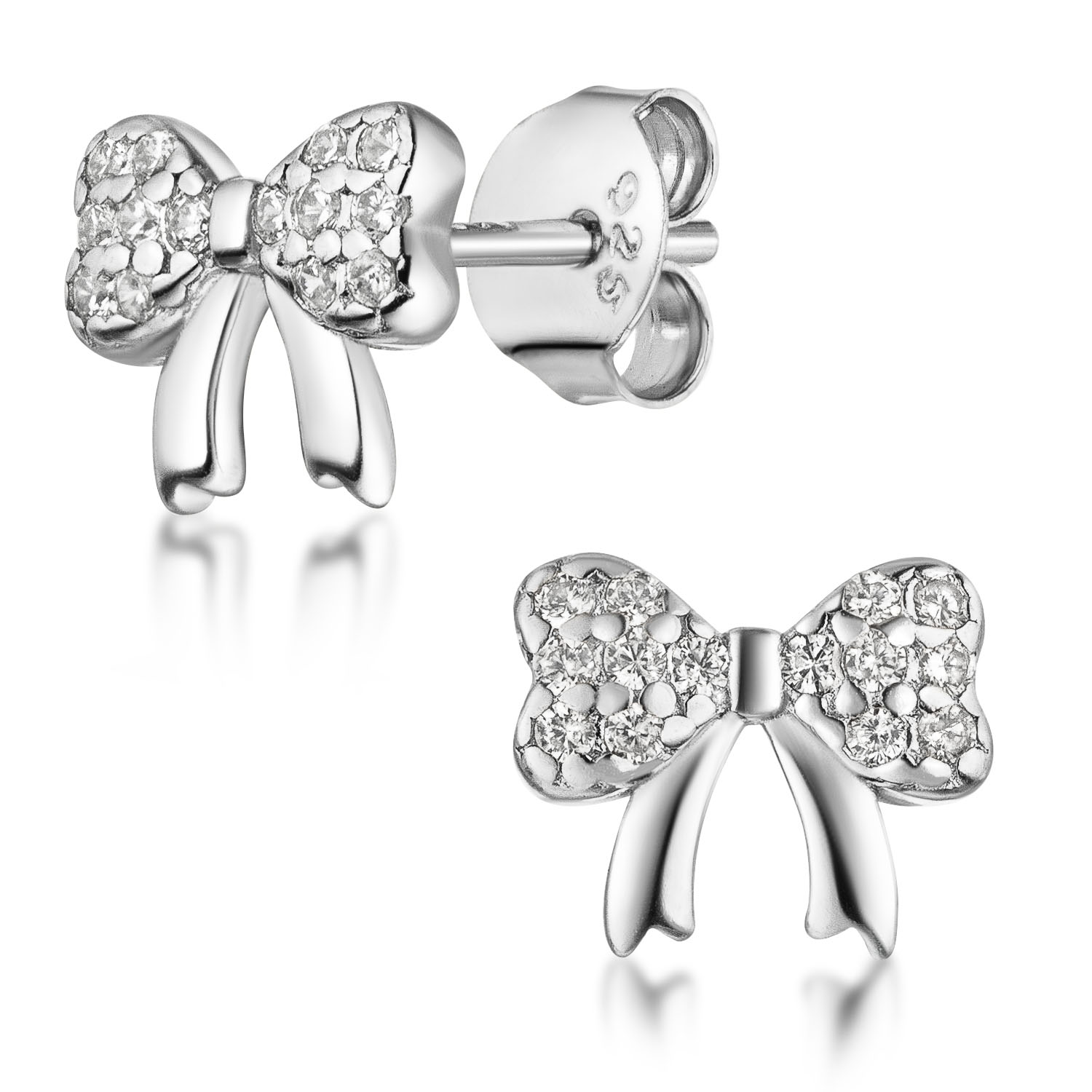 Kleine Schleifen Ohrringe mit weißen Zirkonia Steinen aus 925 Sterling Silber.