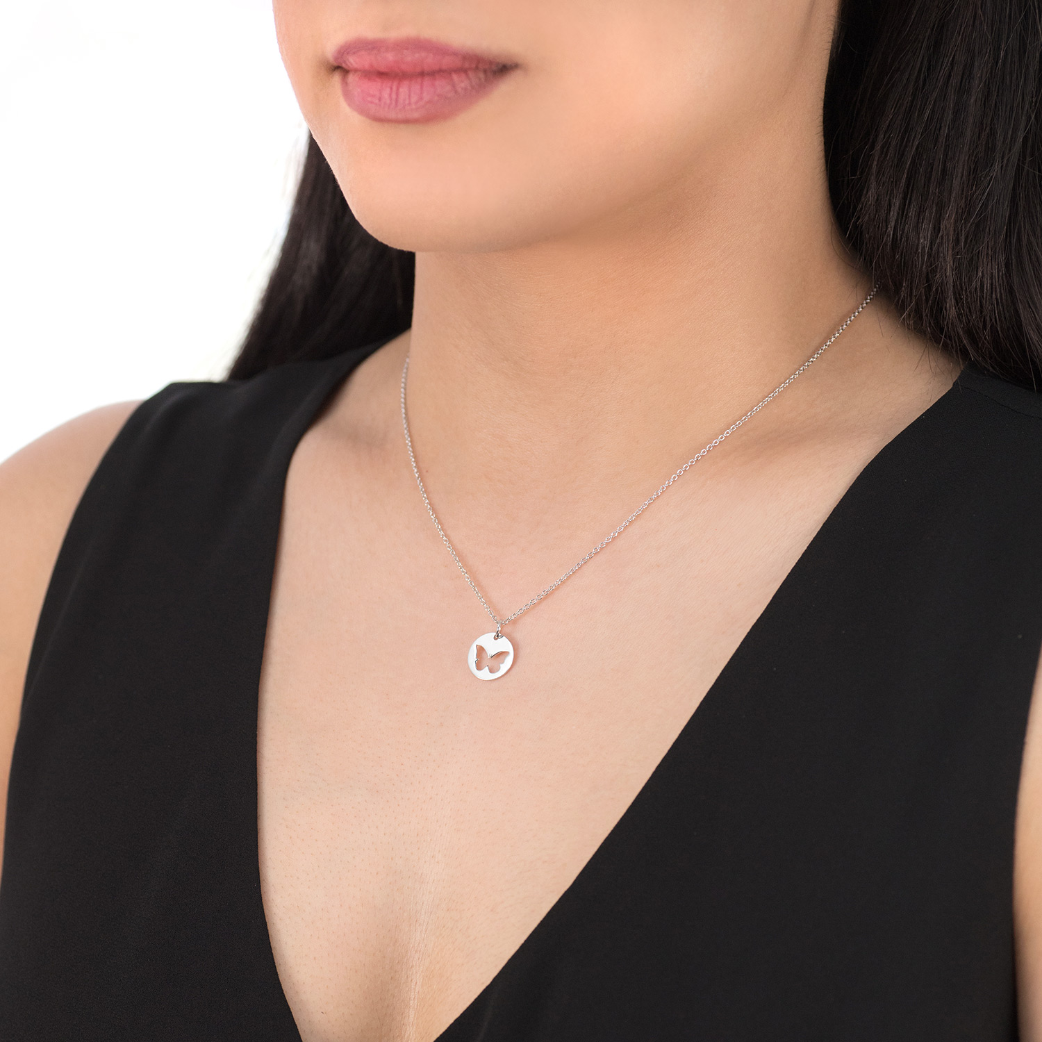 Ein Schmuckstück mit dynamischer Ausstrahlung in bester Qualität. Sowohl die Kette als auch der Schmetterling Anhänger sind aus rhodiniertem 925er Sterling Silber gefertigt. Mithilfe des Verlängerungskettchens kann das Schmuckset um bis zu 5cm erweitert werden.