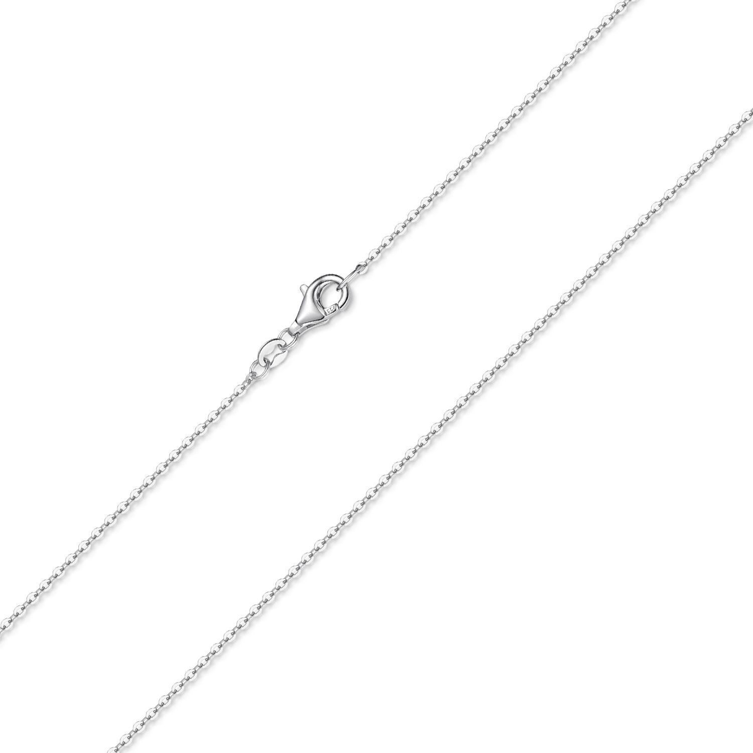 Unsere Basis Schmuck Kette im Ankerketten-Design wurde aus 925 Sterling Silber in Deutschland produziert. Die Halskette mit Karabinerverschluss bieten wir Ihnen 6 verschiedenen Längen an: 40/45/50/60/70/80cm. Die Kette passt mit einer Dicke/Stärke von 1,2mm auch zu filigranen Anhängern. Die Oberfläche wurde rhodiniert, somit ist diese Silberkette bestens vor einem frühzeitigem Anlaufen geschützt.