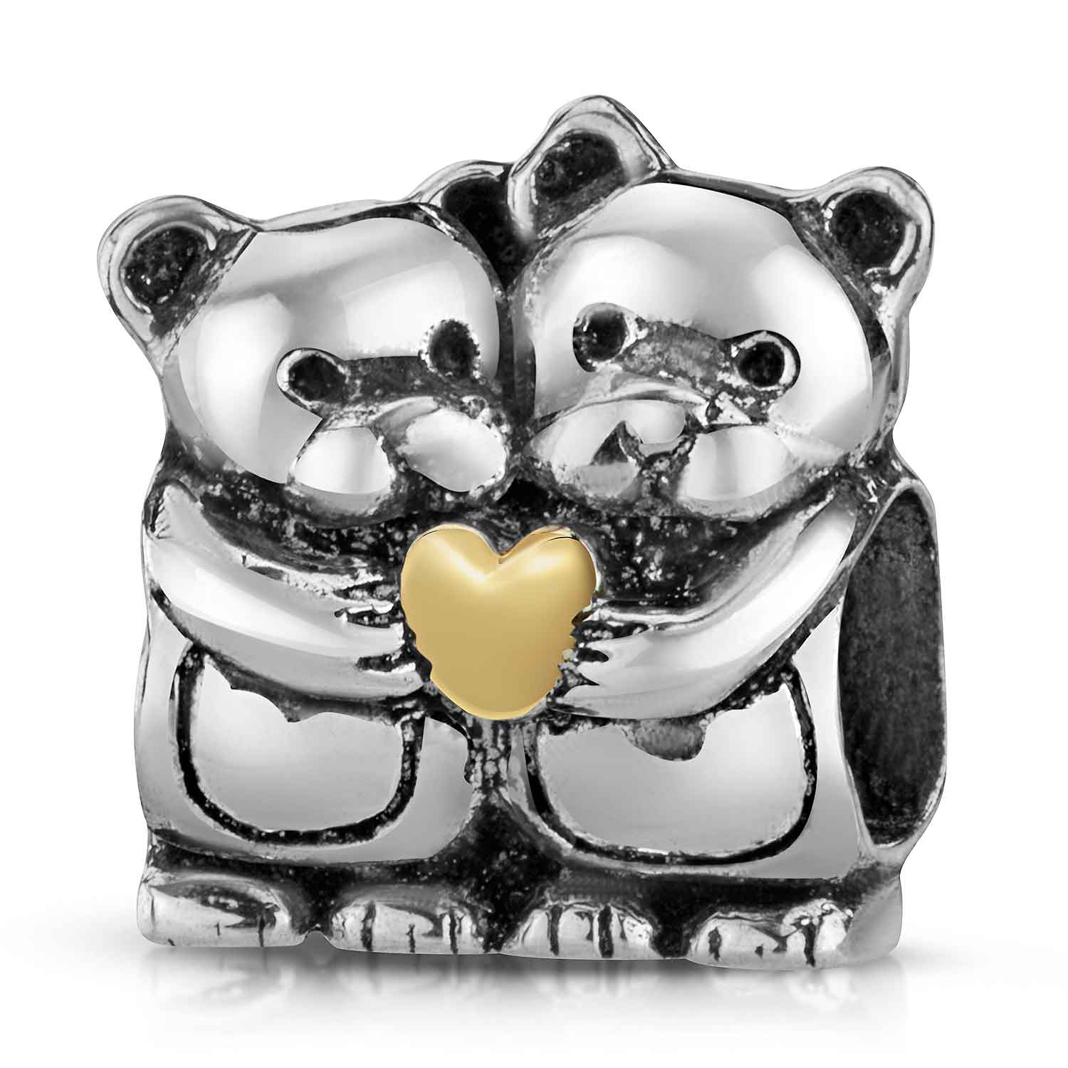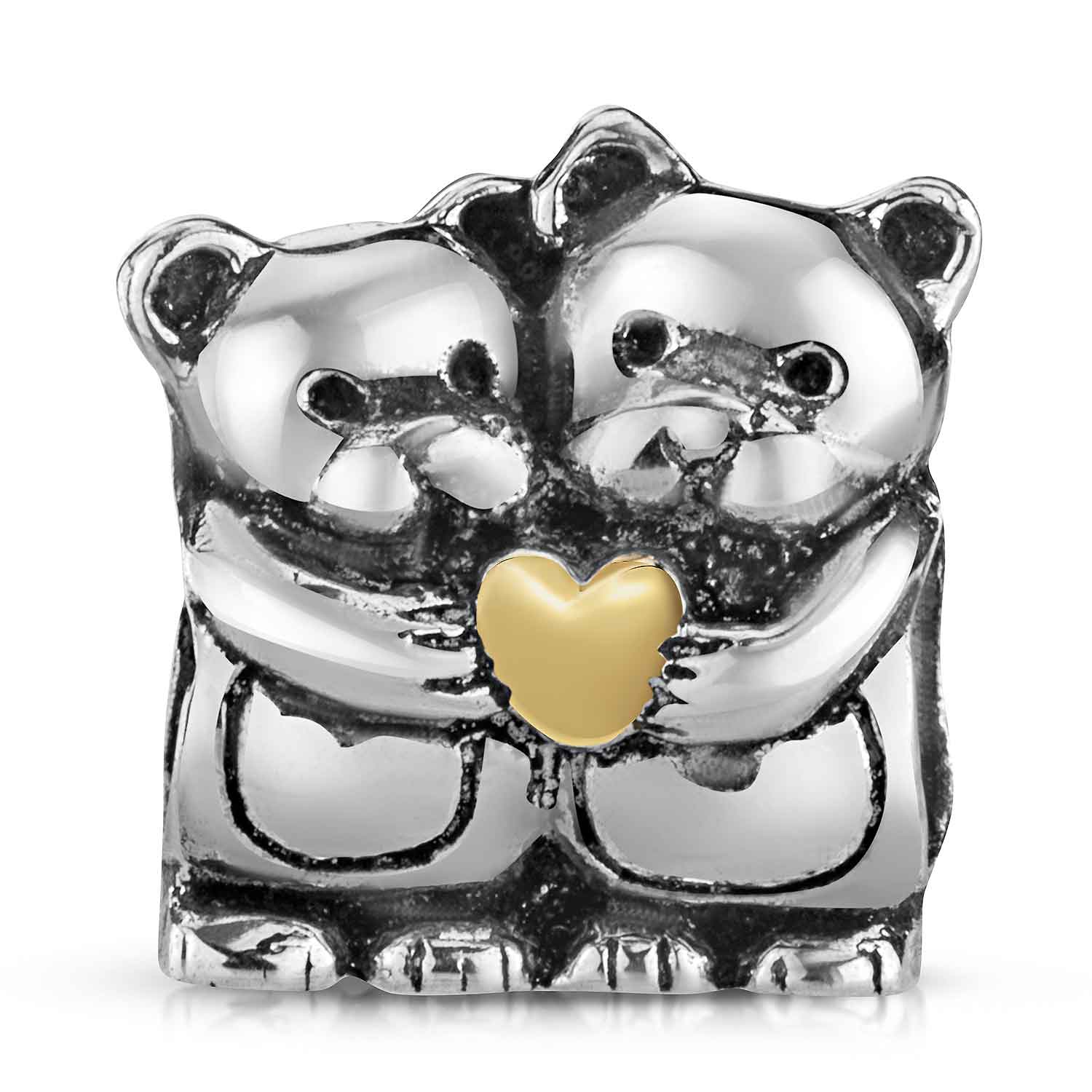Silber Bead in Form eines süßen Bären-Pärchens mit goldenem Herz. Der Bead aus teilweise vergoldetem 925 Silber ist kompatibel zu allen Bead Armbändern & Ketten mit einer max. Stärke von 4,4mm.