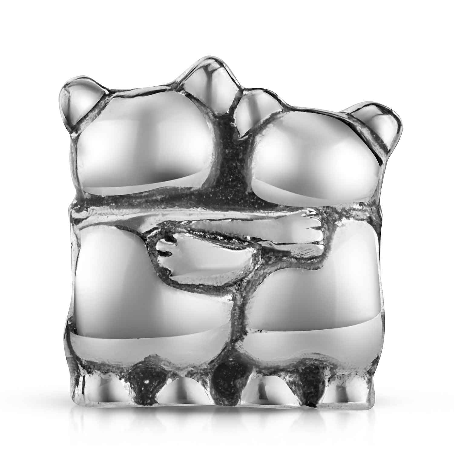 Süßer Silberbead mit dem Motiv eines Bärenpaares, welches ein goldenes Herz in den Händen hält. Der kleine Bärchen Anhänger ist passend zu allen gängigen Bead Armbändern und Ketten bis max. 4,4mm Stärke.