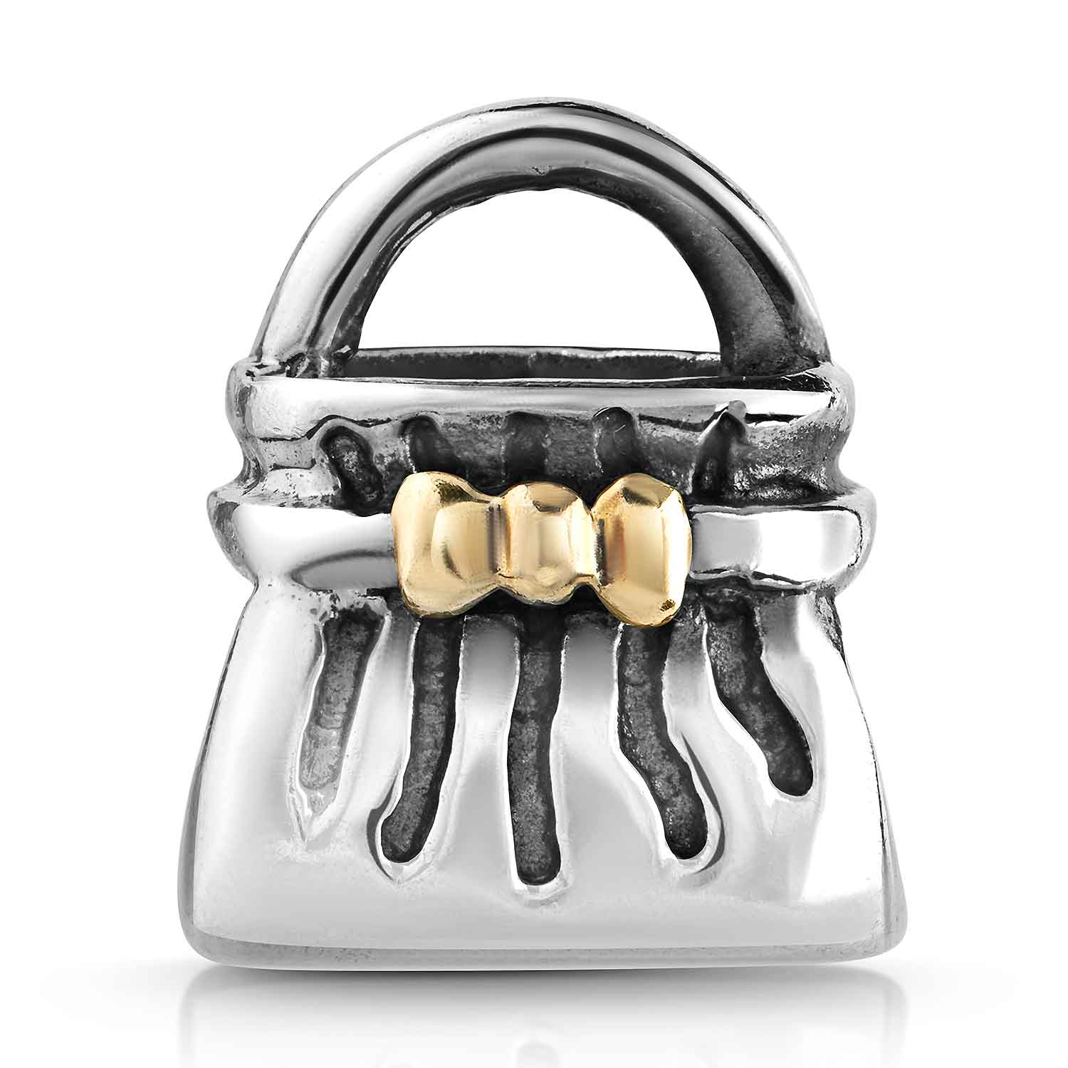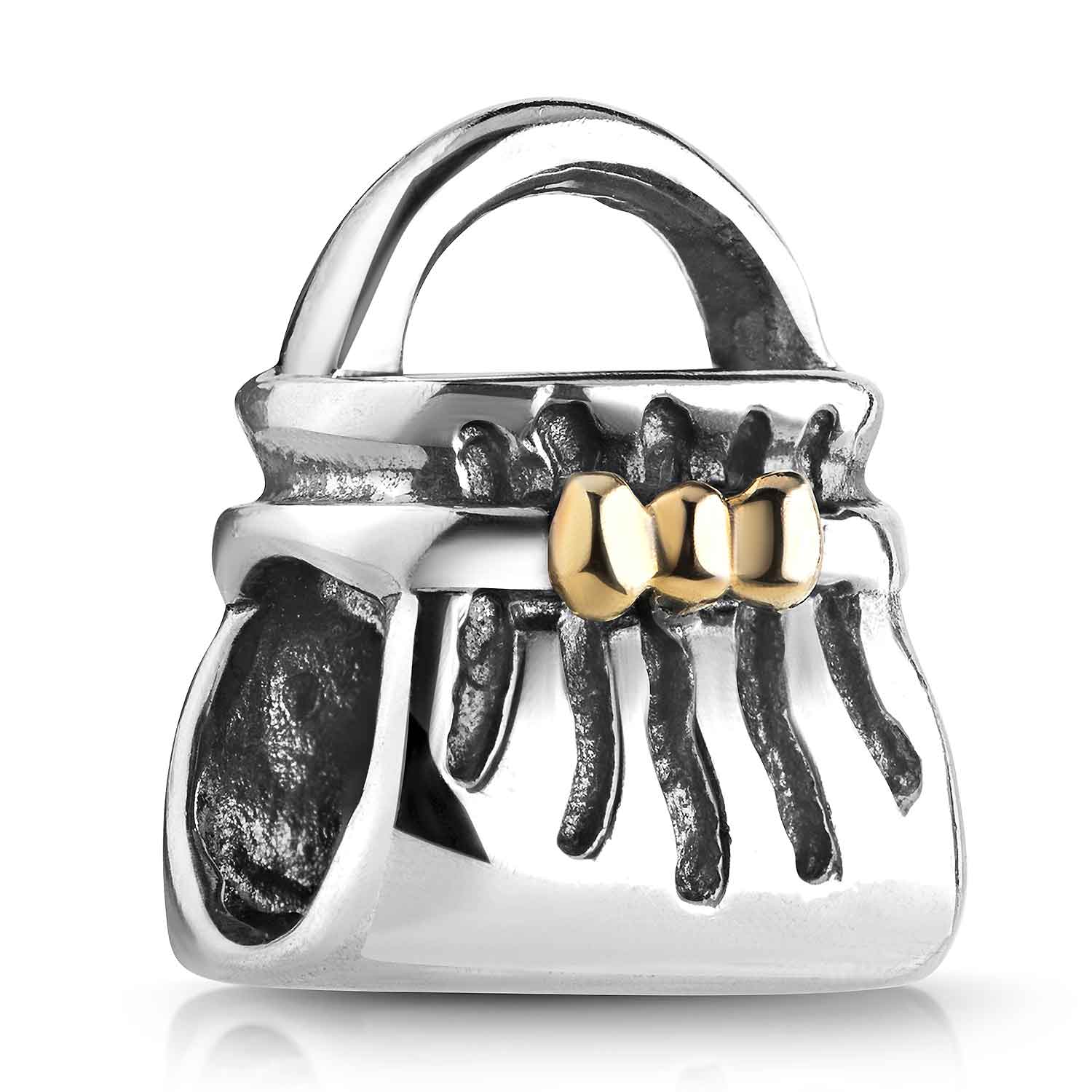 Silber Bead in Form einer Handtasche aus 925 Sterling Silber, teilvergoldet. Der Bead ist geeignet für alle Beads Armbänder und Ketten bis 4,4mm Stärke.