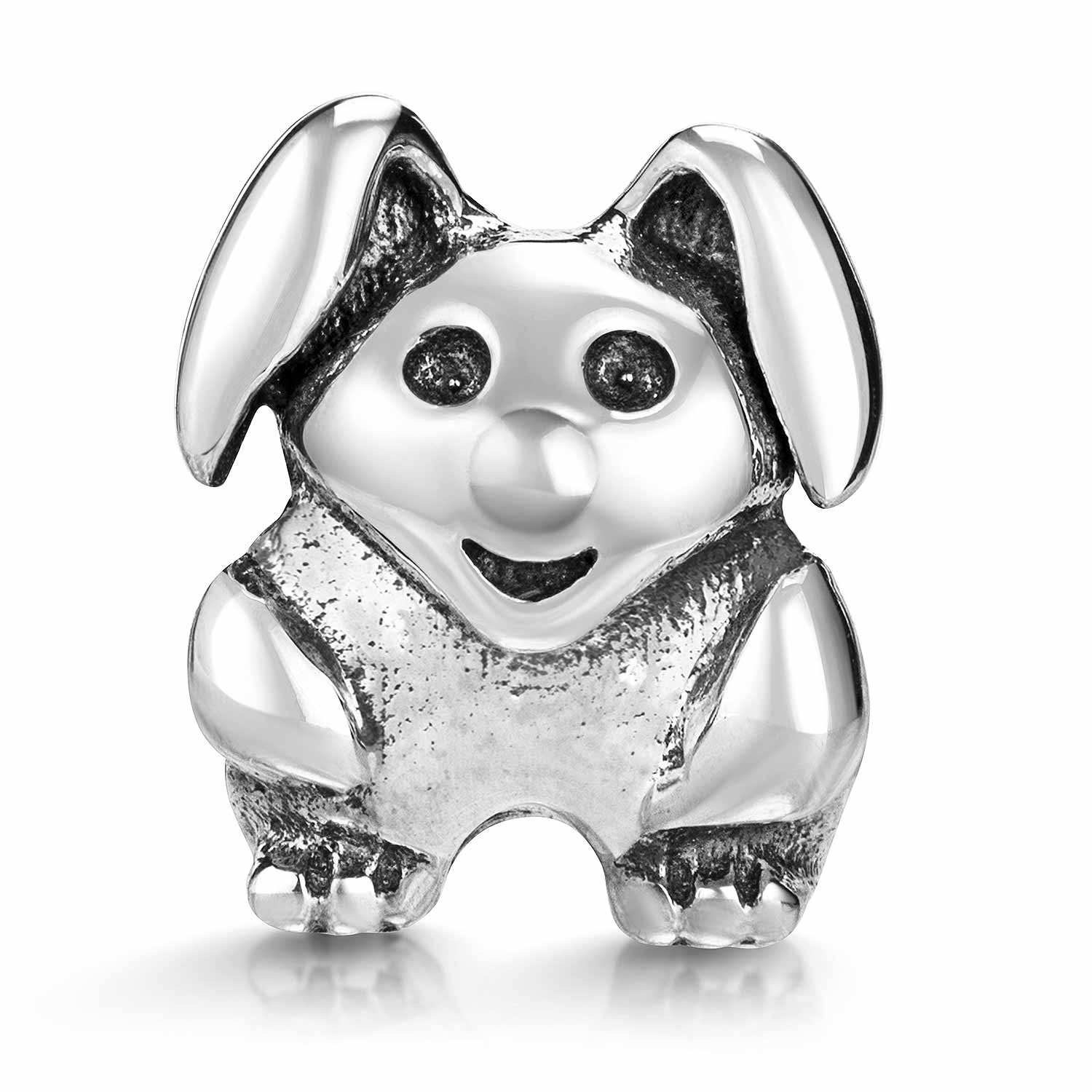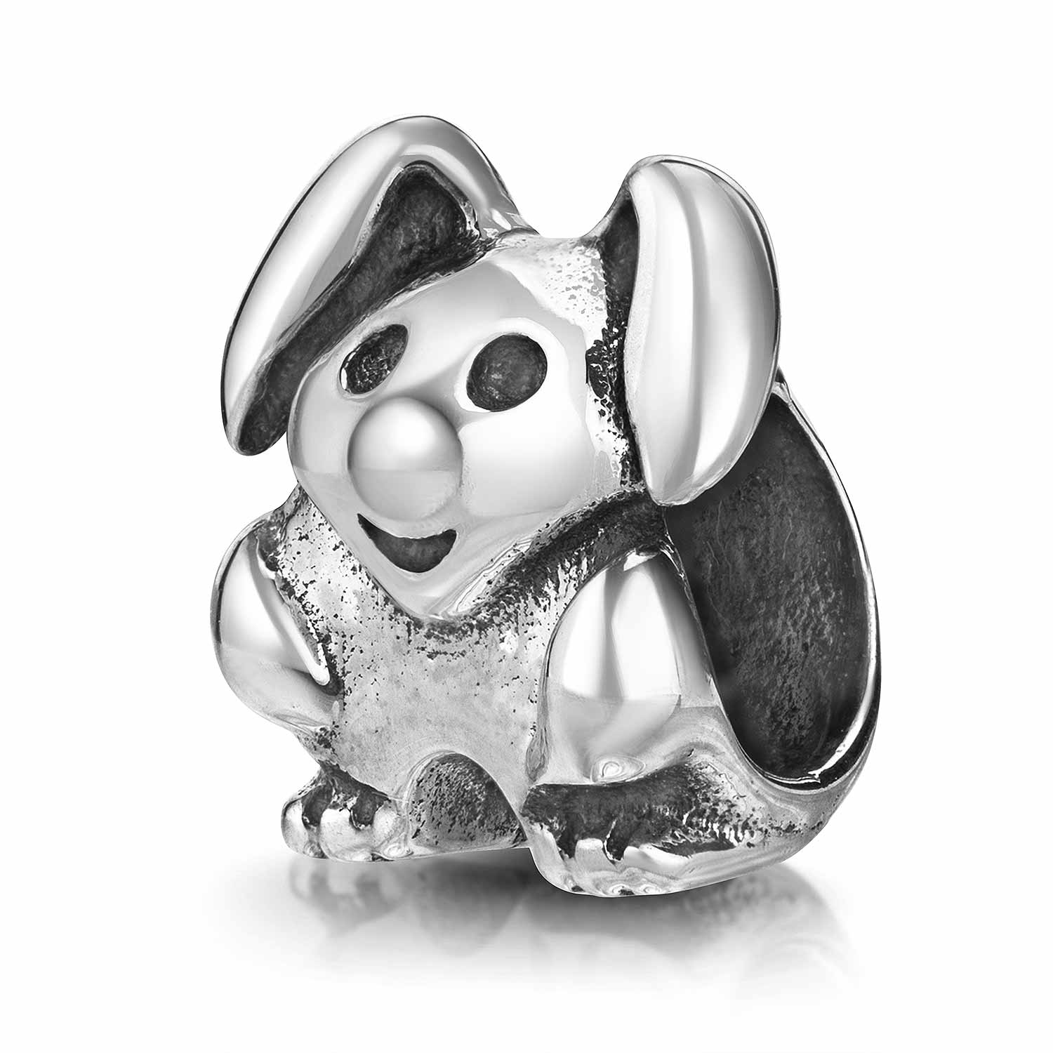 Hochwertig verarbeiteter Silber Bead Hase im antik Style aus 925 Sterling Silber. Dieser Häschen Anhänger ist kompatibel für Beads Armbänder bis 4,4mm und somit passend zu den meisten Marken Beads.