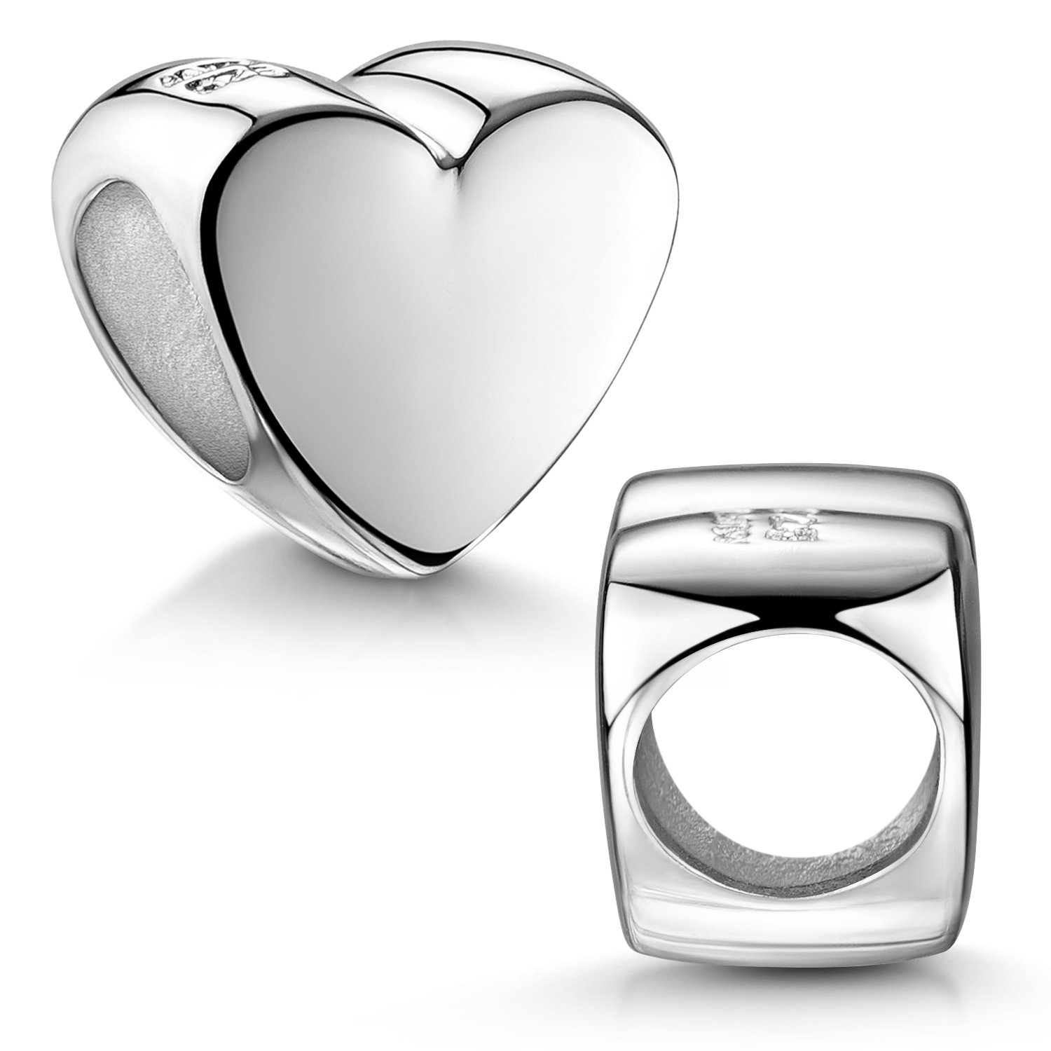 Süßer Bead in Herz Form aus massivem Sterling Silber für Beads Armbänder und Ketten bis 4,4mm Stärke. Der Anhänger ist somit kompatibel zu fast allen Beads Armbändern bekannter Herstellern.