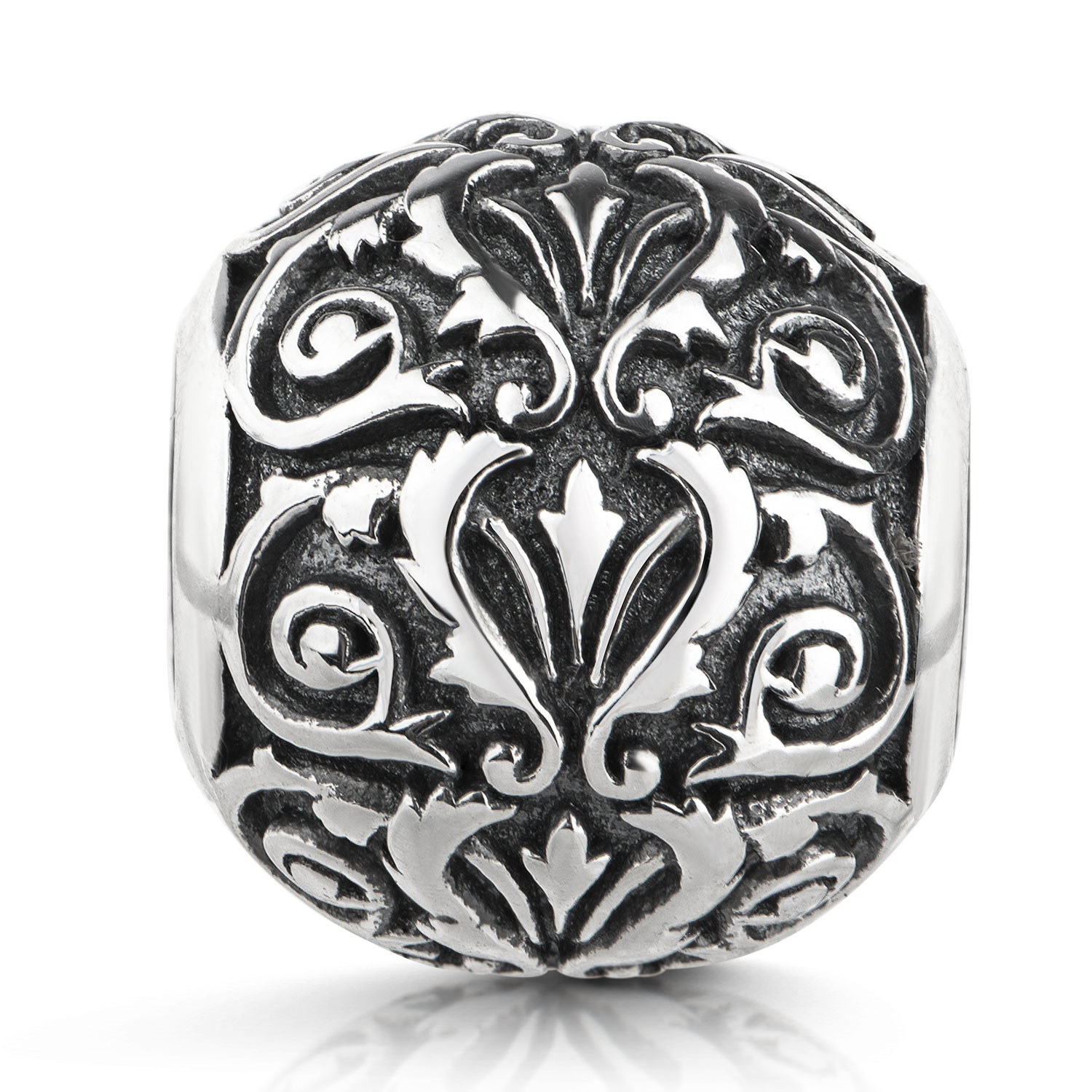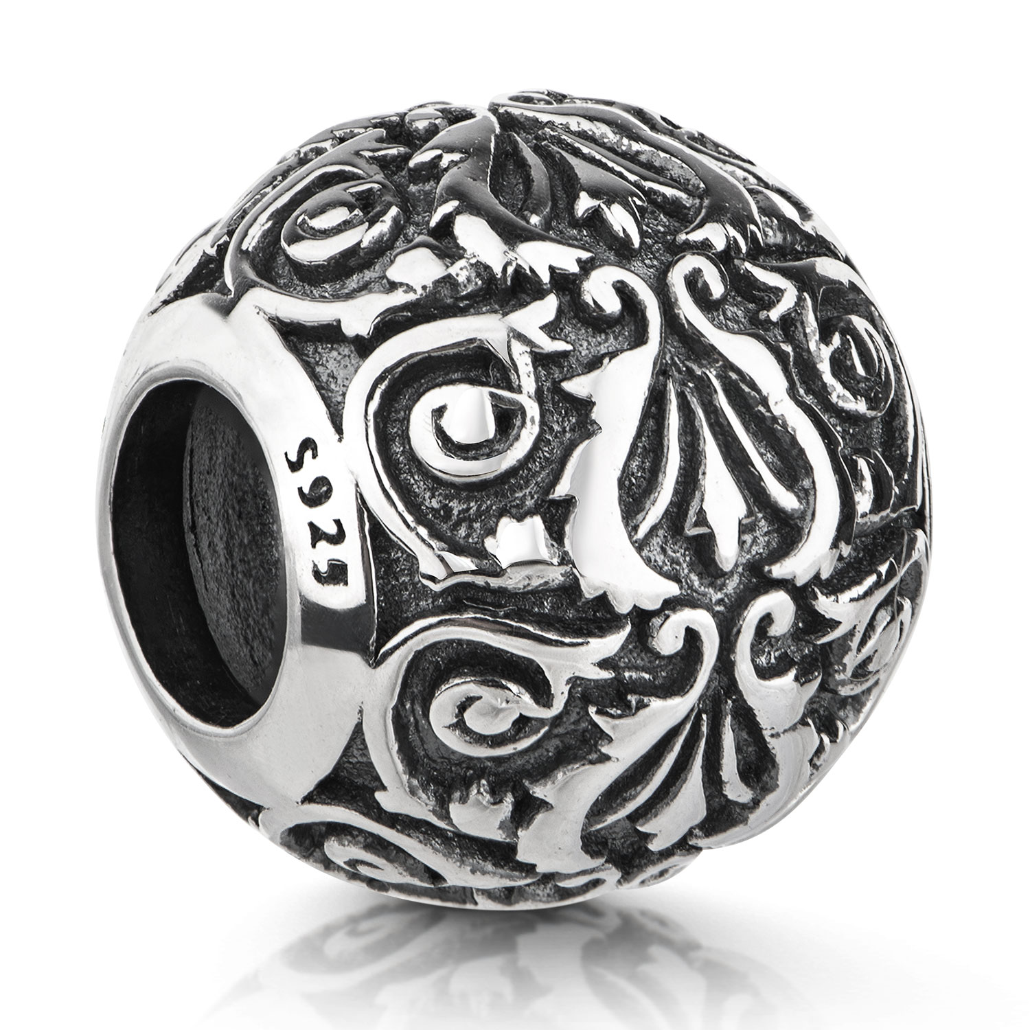 Runde Bead Kugel aus 925 Sterling Silber Bead mit floralen Ornamenten im antiken Stil, geeignet für alle Beads Armbänder mit einer max. Breite von 4,4mm.