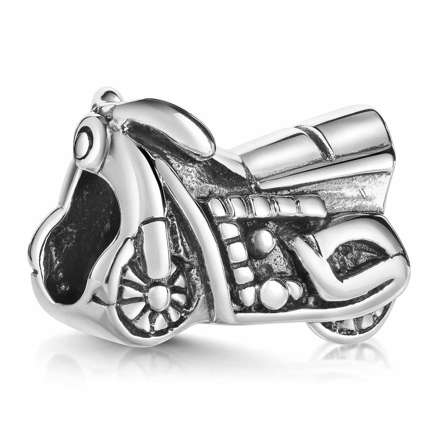 Dieser Bead in Form eines Motorrads ist aus massiv 925 Silber gefertigt und in antiker Optik gehalten. Der Silber Bead ist passend zu allen gängigen Beads Armbändern bis max. 4,4mm Stärke und ist kompatibel zu fast allen Armbändern bekannter Hersteller. Dank der ausgezeichneten Verarbeitung und der besonderen Optik des Silberanhängers wird er an Ihrem Handgelenk oder Halskette nicht unbemerkt bleiben.