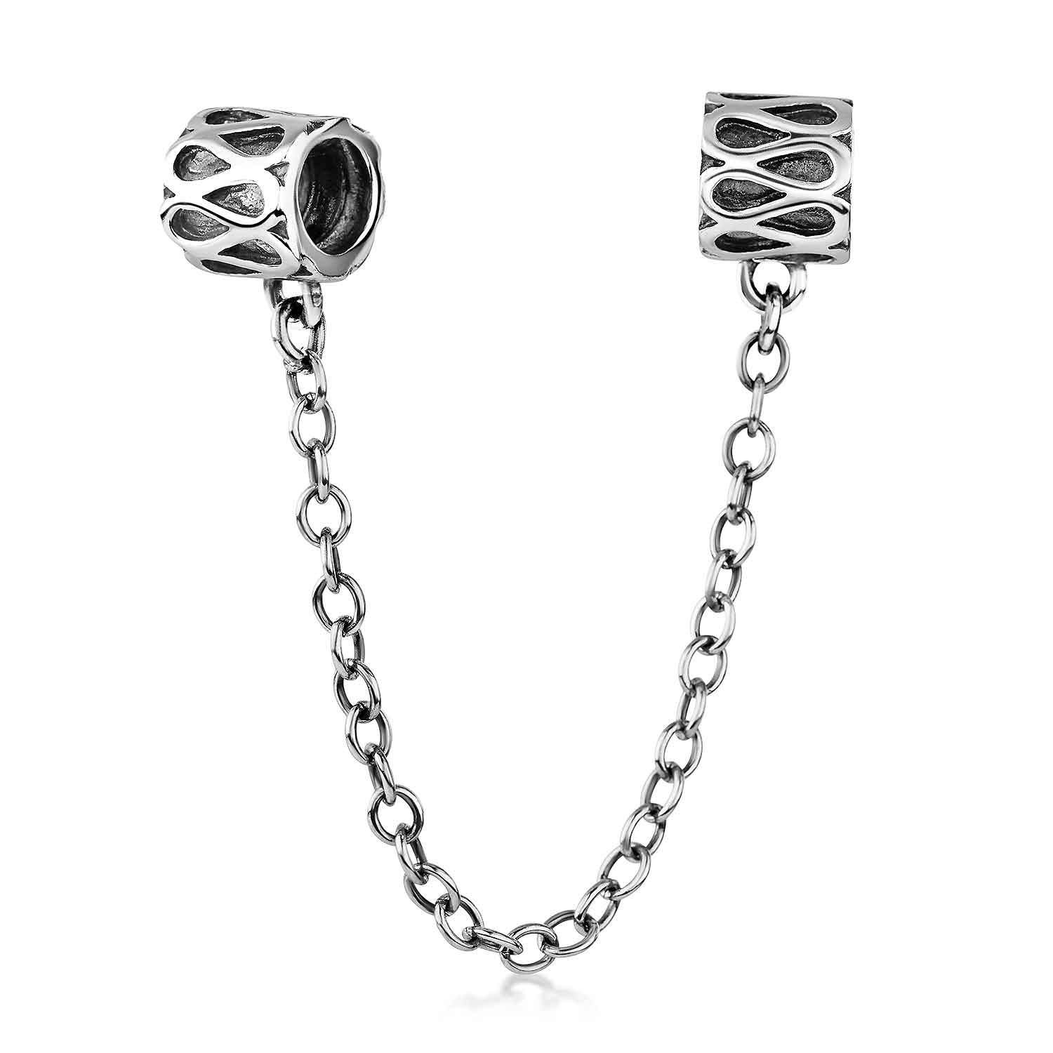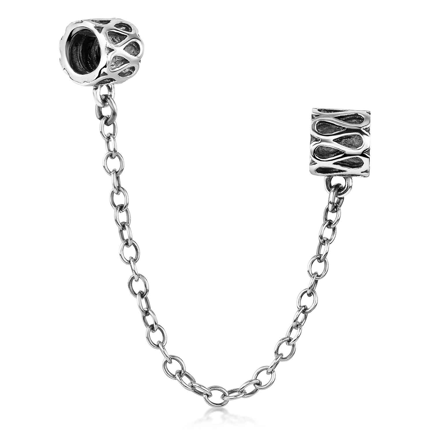 Gewinde Sicherheitskette mit Wellen Ornamenten aus massivem 925 Sterling Silber, passend für alle gängigen Beads Armbänder & Ketten.