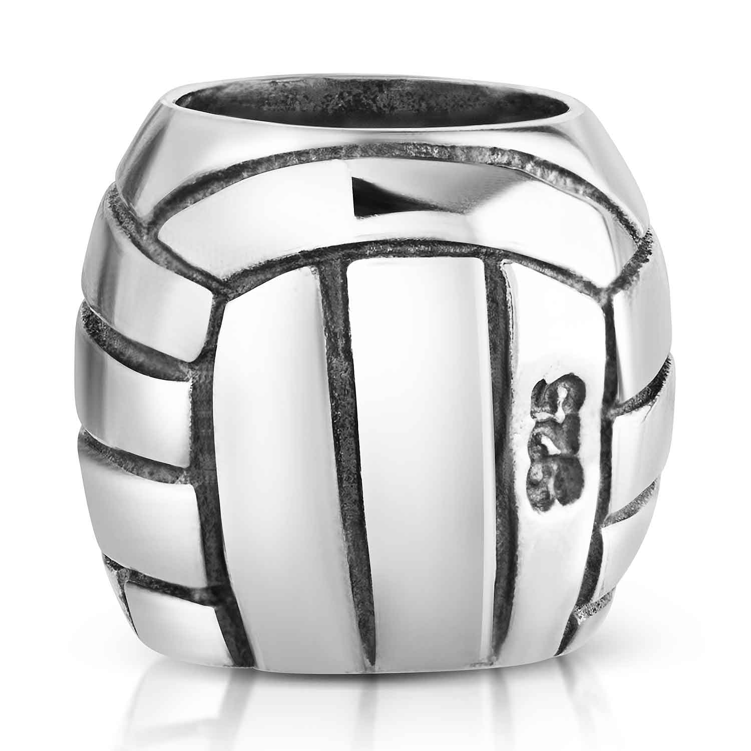 Silber Bead in Form eines Volleyballs aus 925 Sterling Silber, antik oxidiert - geeignet für alle Beads Armbänder und Ketten bis 4,4mm Stärke.