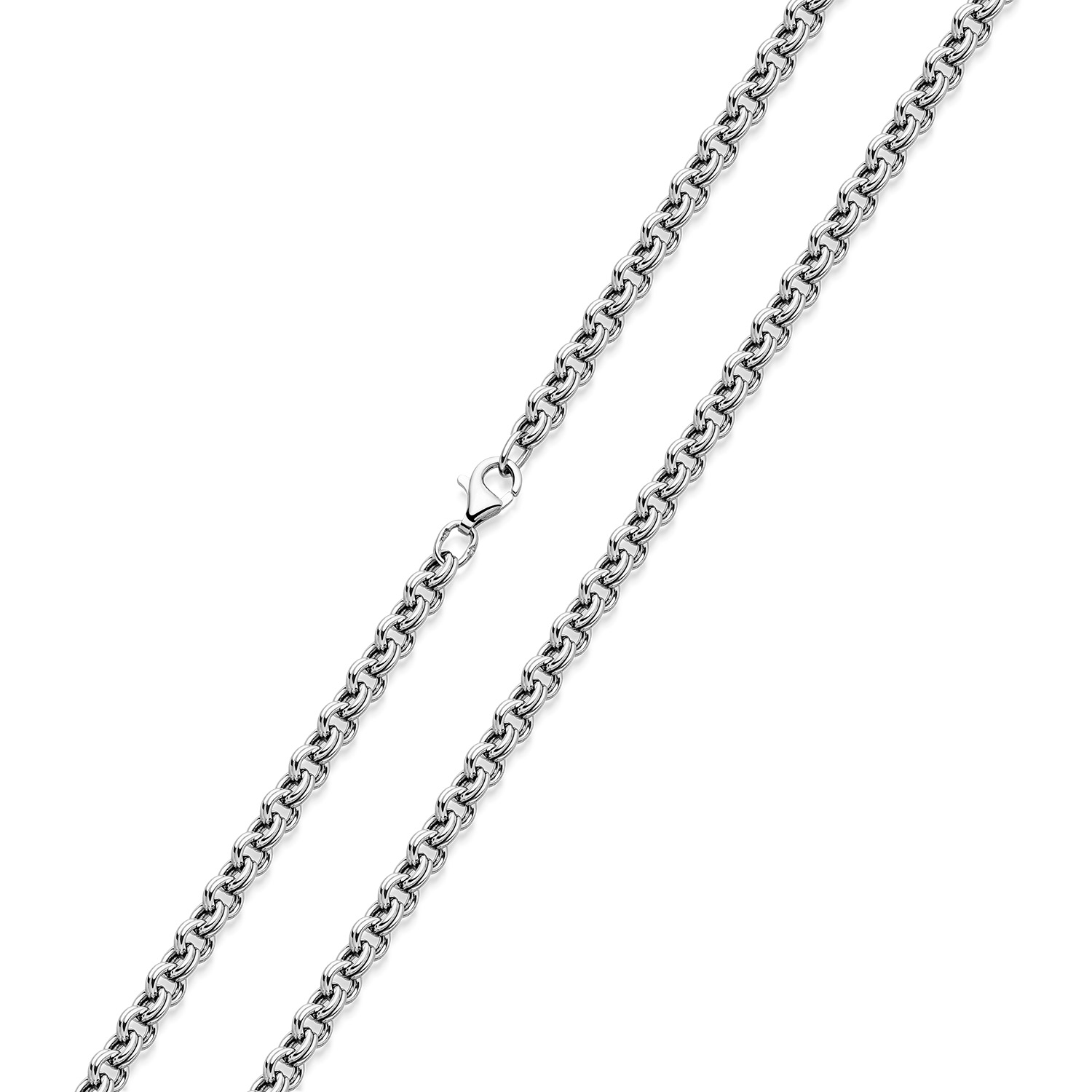Die Anzahl der Kettenglieder ist bei dieser stylishen Kettenart verdoppelt worden. Dies erzeugt nicht nur eine interessantere Optik, sondern sorgt auch für wesentlich mehr Stabilität und Reißfestigkeit im Vergleich zu eingliedrigen Ankerketten.