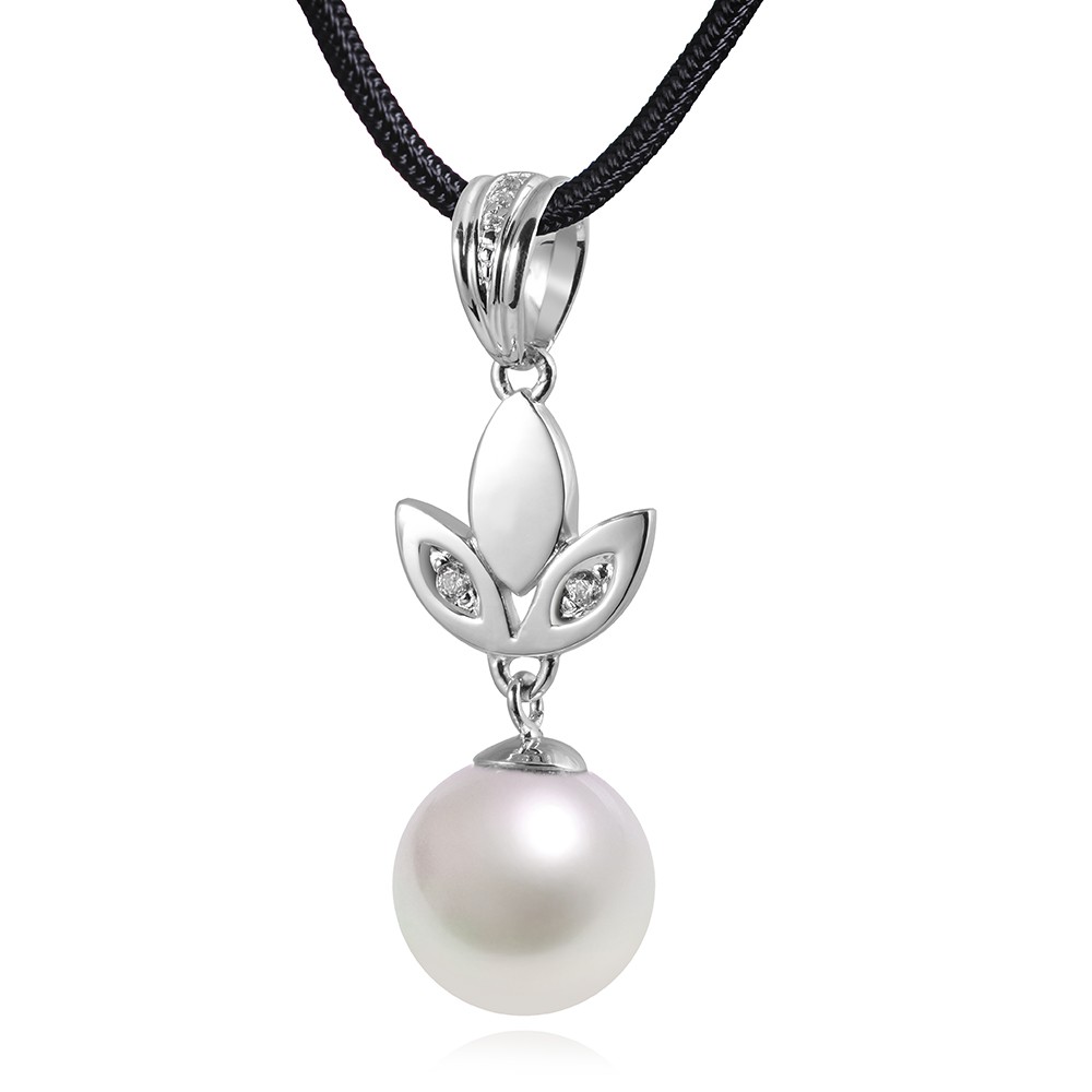 Wunderschöner Kettenanhänger im Dreiblatt-Design aus 925 Silber mit 1 echten Muschelkernperle sowie Zirkonia Steinen. Der Ketten Anhänger stammt und bietet ausgezeichnete Qualiität.