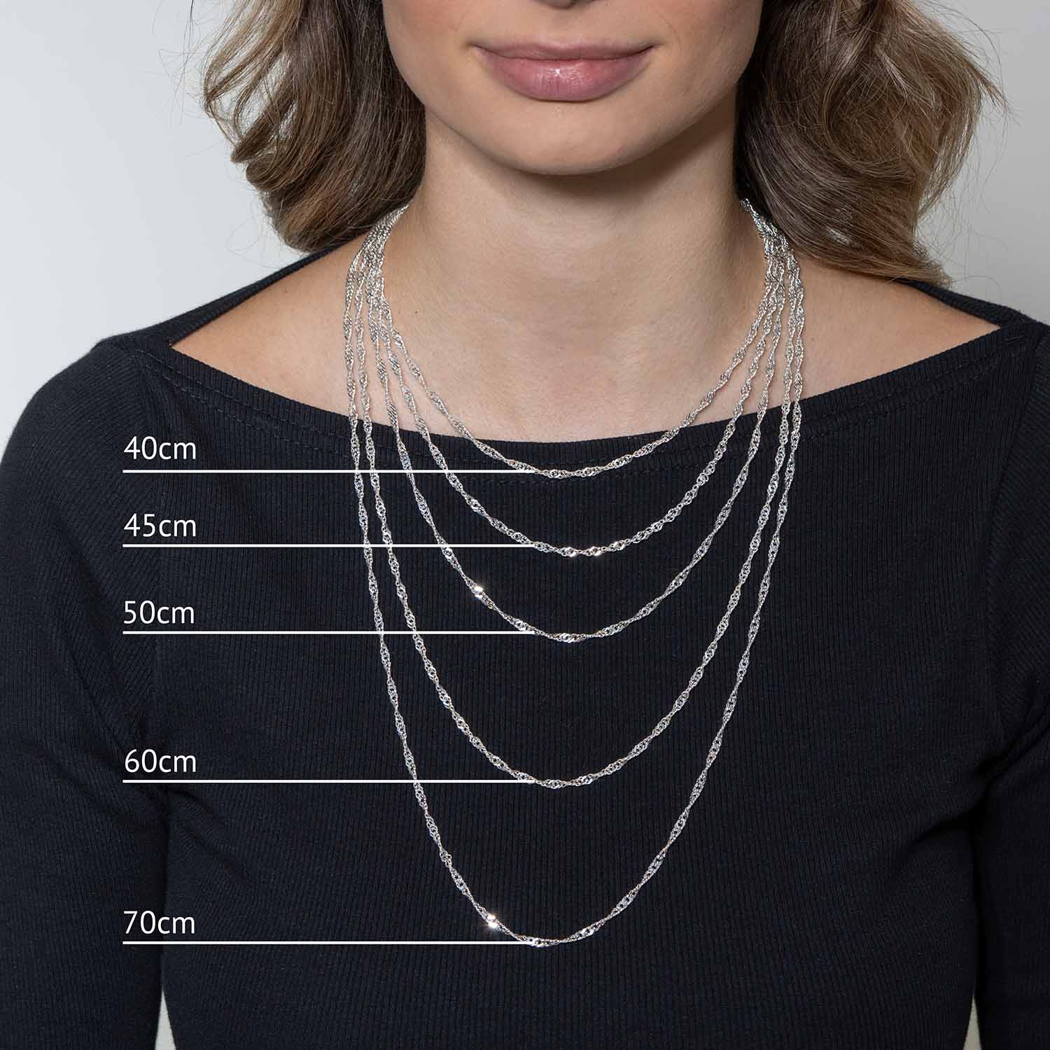 Edle Halskette für Damen im gedrehten Singapur-Design aus massivem 925 Sterling Silber aus deutscher Silberschmiede. Unsere Silberkette ist diamantiert und zudem anlaufgeschützt.