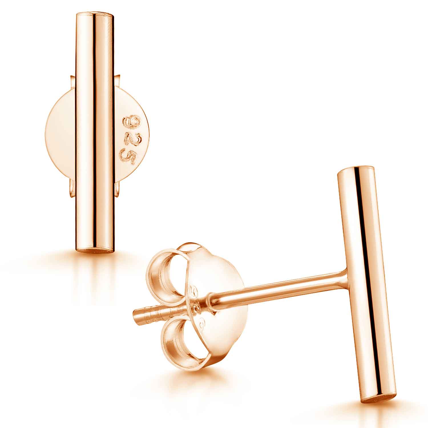 Kleine Damen Ohrstecker in Stabform aus rosé vergoldetem 925 Sterling Silber. Die Stab Ohrringe eignen sich durch Ihre Größe auch ideal für das zweite oder dritte Ohrloch.