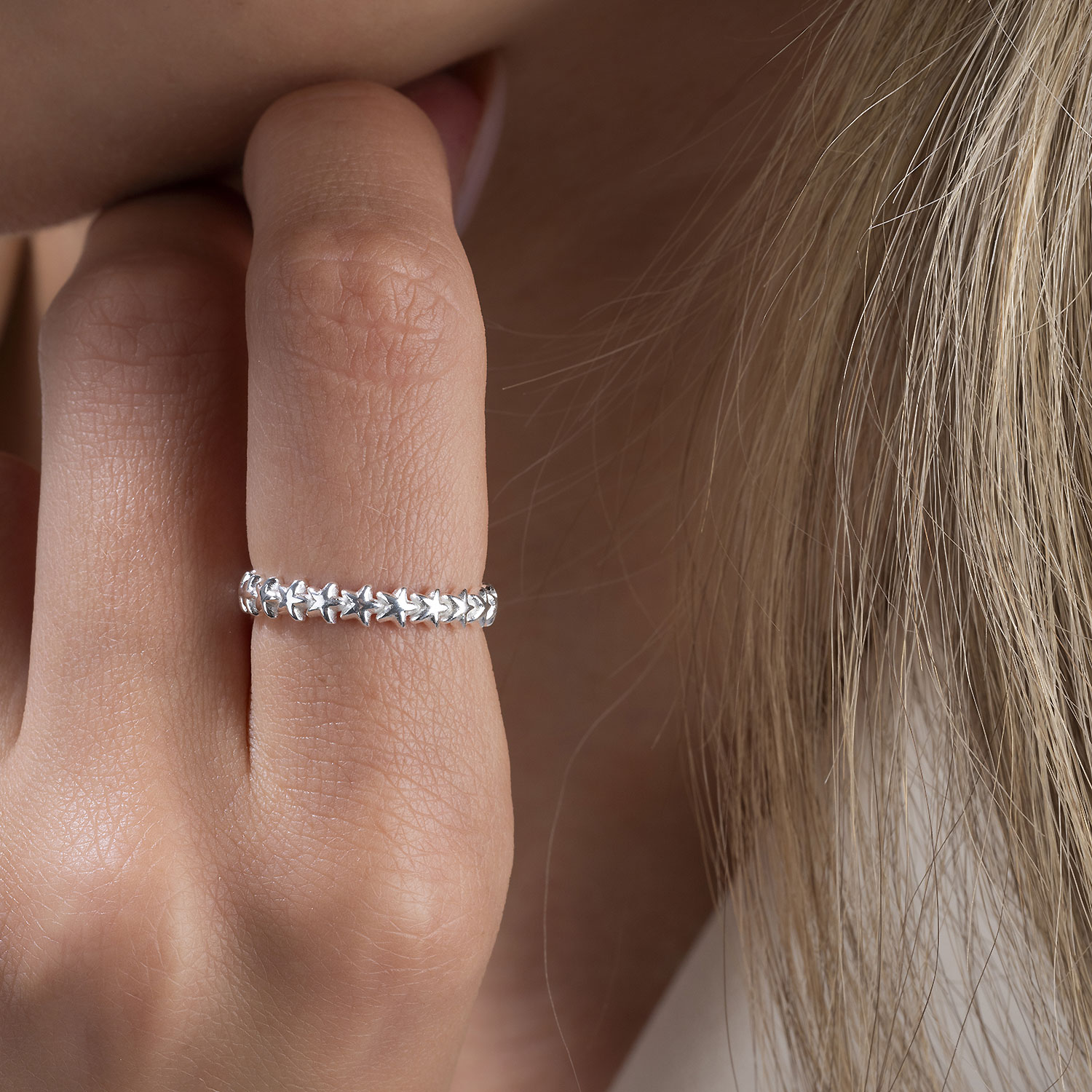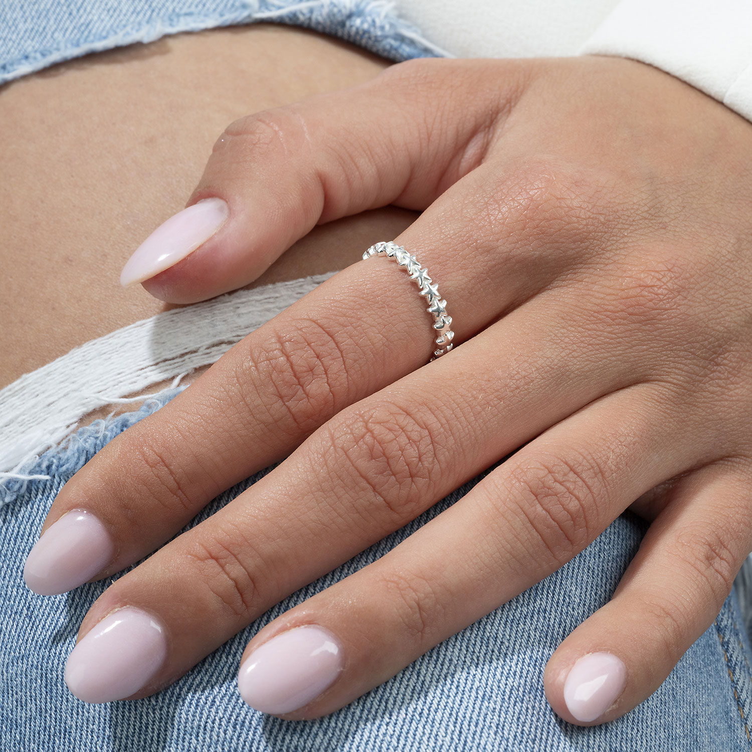 Zarter Ring für Frauen mit aneinandergereihten Sternen aus 925 Sterling Silber.