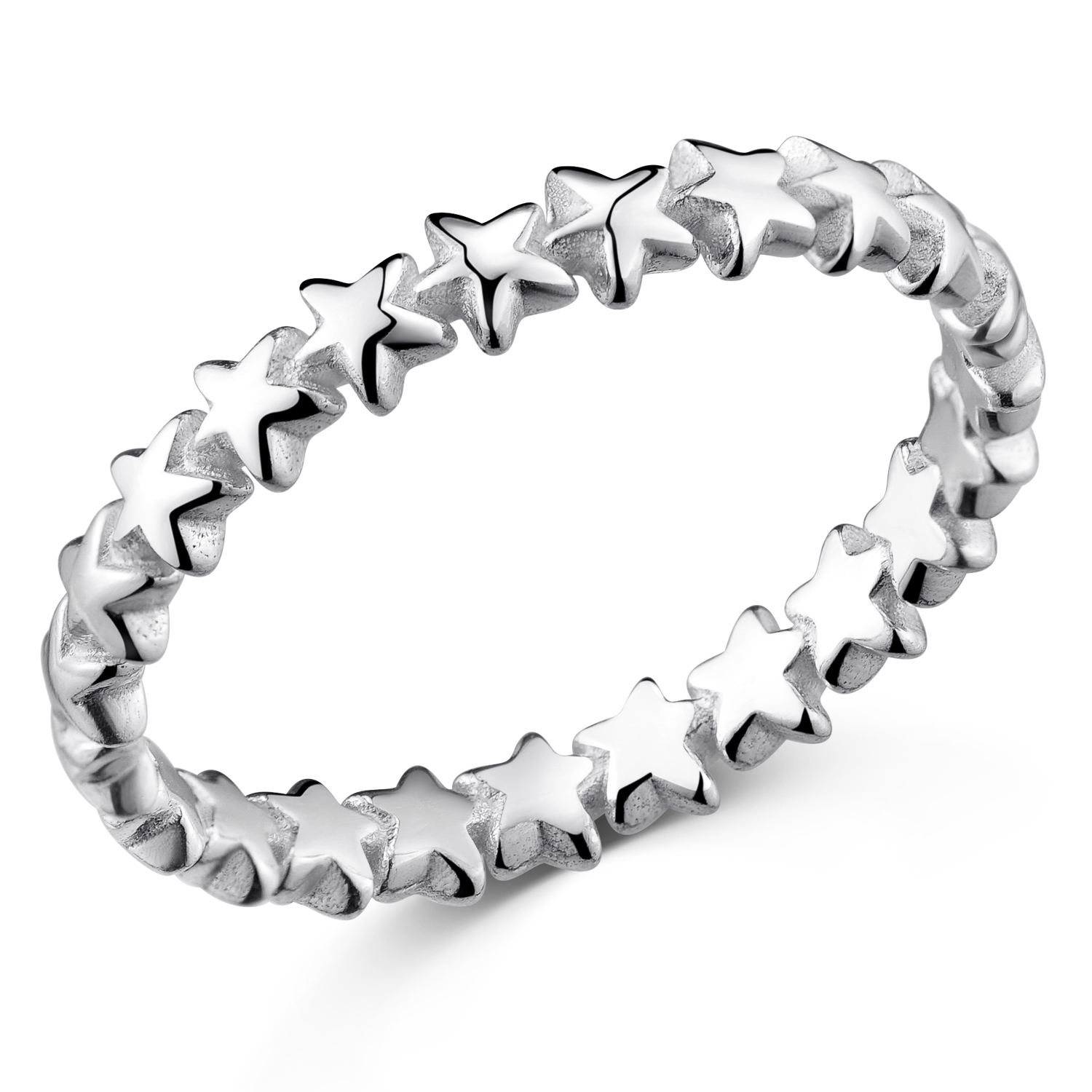 Unser Silberring mit zahlreichen kleinen aneinandergereihten Sternen aus reinem 925 Sterling Silber sieht besonders zart, feminin und zeitlos aus. Das schlichte und zugleich aussagekräftige Optik macht es Ihnen möglich, den Ring zu fast jedem alltäglichen Anlass zu tragen.