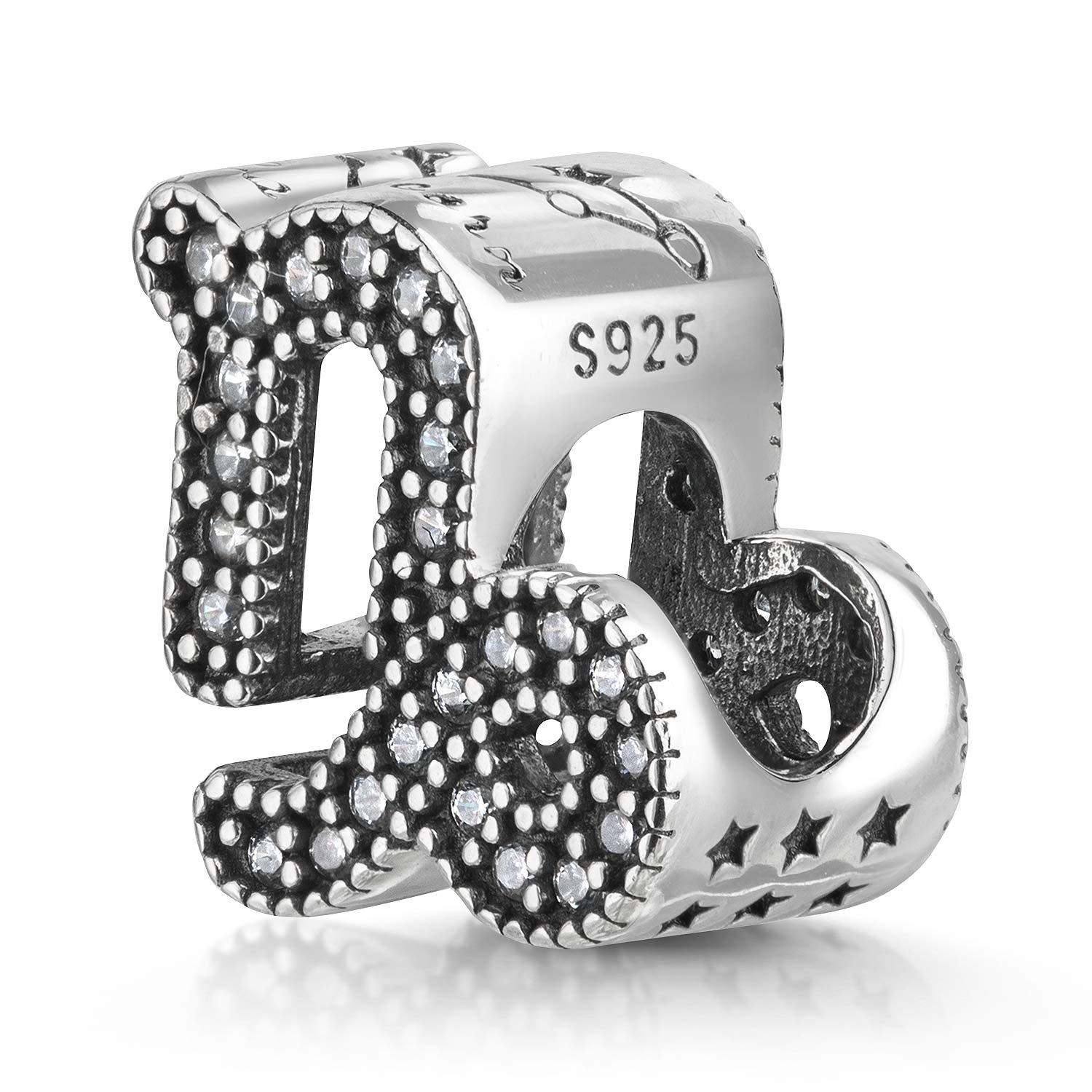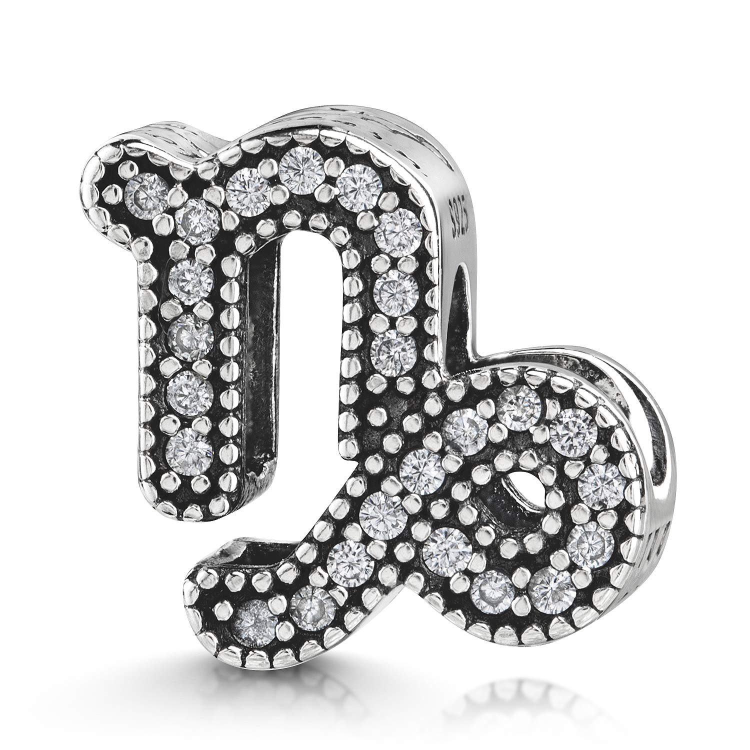 Funkelnder Charm mit dem Sternzeichen Steinbock aus 925 Sterling Silber. Der Bead ist mit zahlreichen weißen Zirkonia verziert und eignet sich für alle Beads Armbänder und Ketten bis 4,4mm Stärke.