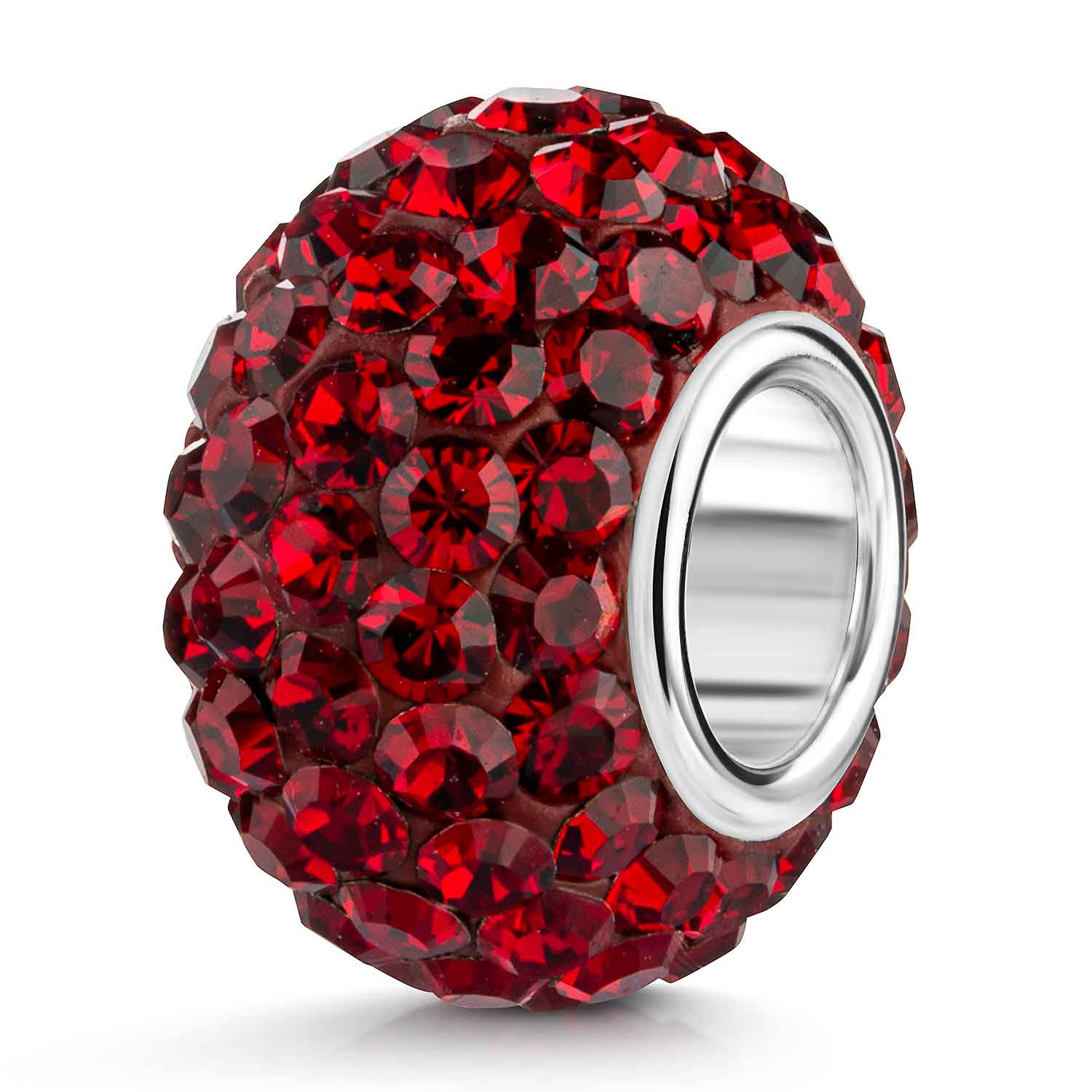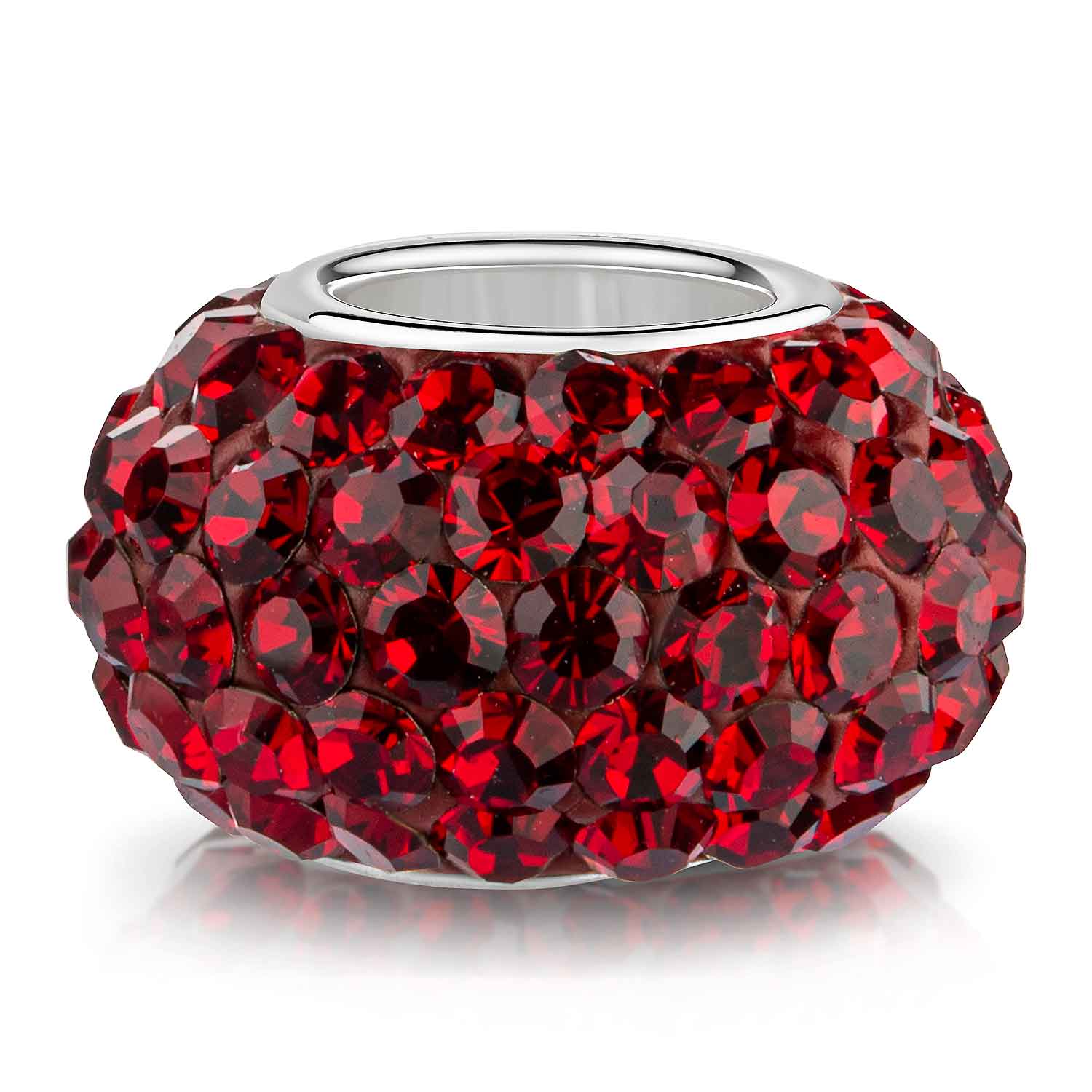 Funkelnder Bead mit dunkelroten Strasssteinchen und einer Hülse aus 925 Sterling Silber. Der Strass Bead passt auf alle handelsüblichen Armbänder und Ketten bis 4,4mm Stärke.