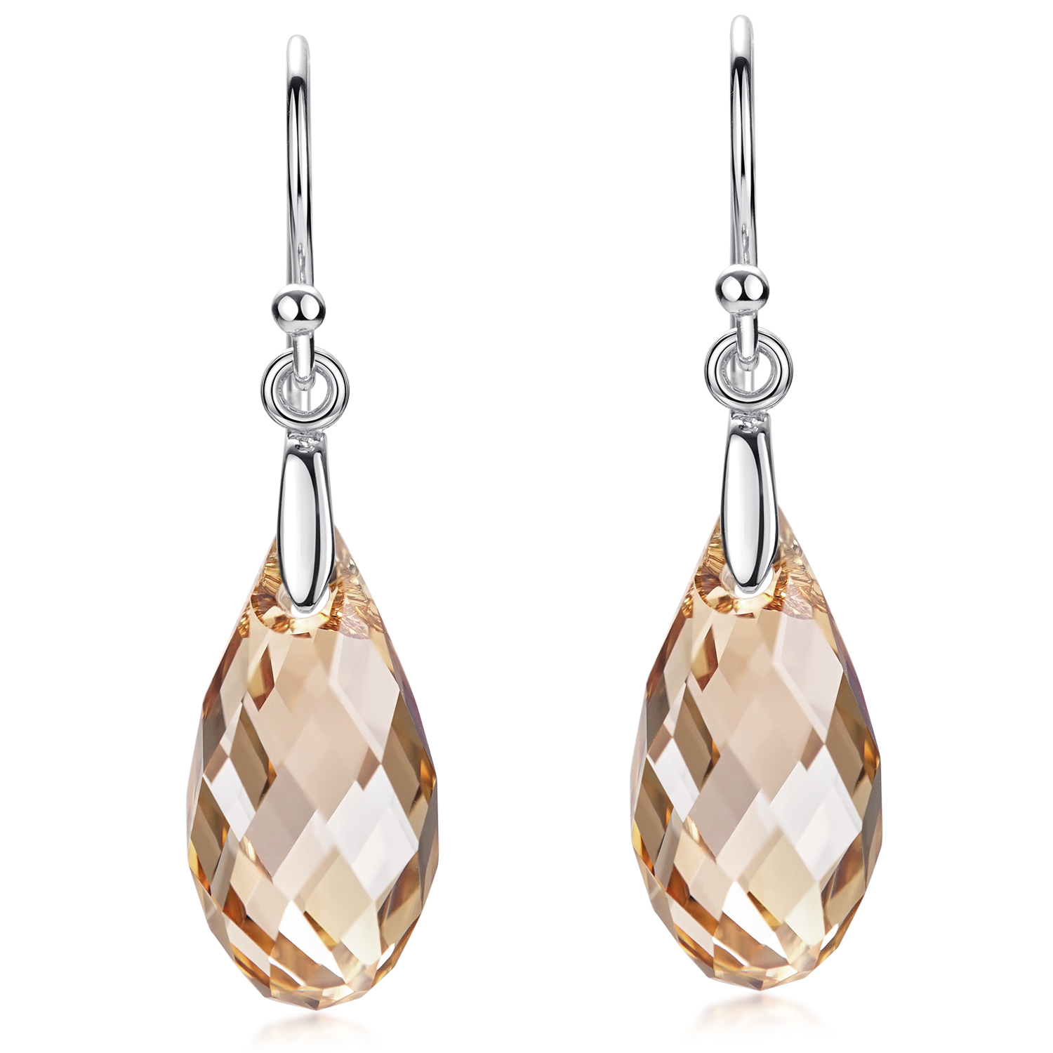 Dreidimensionale 925 Sterling Silber Tropfen Ohrhänger mit facettierten Kristallen in einem attraktiven Apricot-Sandbraun-Farbton.