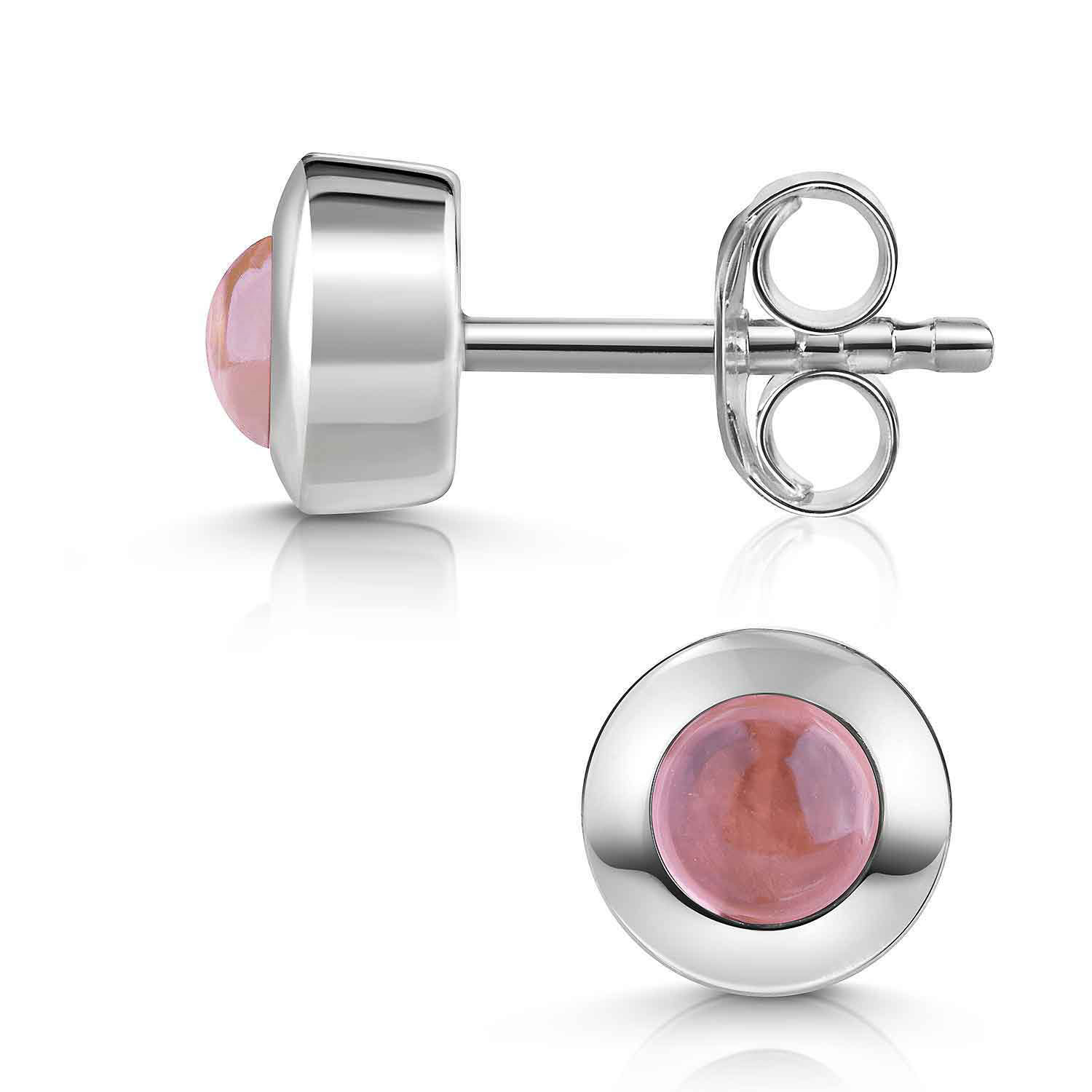 Runde Damen Ohrstecker aus 925 Sterling Silber mit rosa-pinkem Turmalin im Cabochon-Schliff.