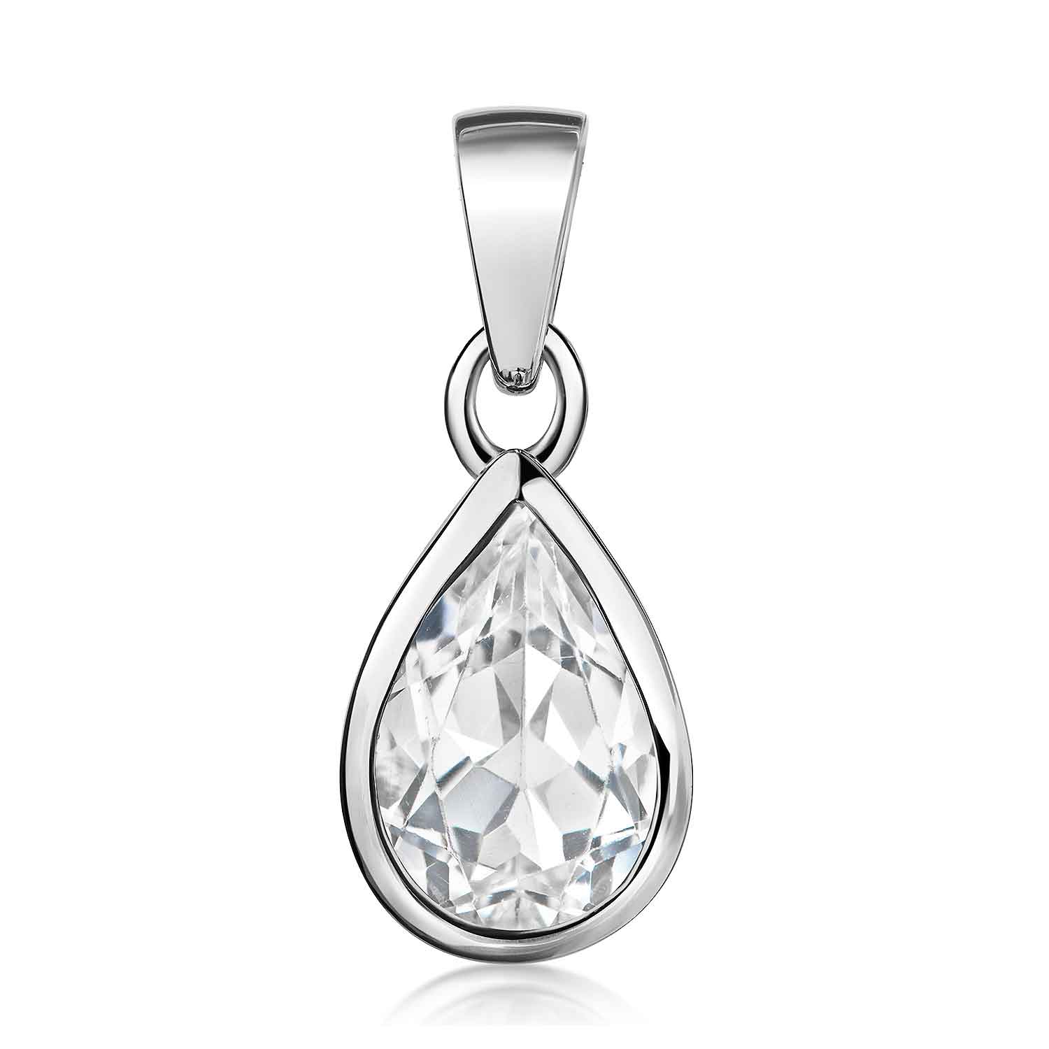 Ein kostbar anmutendes Schmuckstück, das jeden Look veredelt: Ein tropfenförmiger Anhänger mit echtem weißen Topas. Der Anhänger ist ein eleganter Blickfang am weiblichen Dekolleté. Hergestellt aus hochwertigem 925er Sterling Silber, wurden er außerdem rhodiniert und somit vor dem Anlaufen geschützt. Wahlweise erhältlich mit einer feinen Ankerkette in 40-50cm Länge.