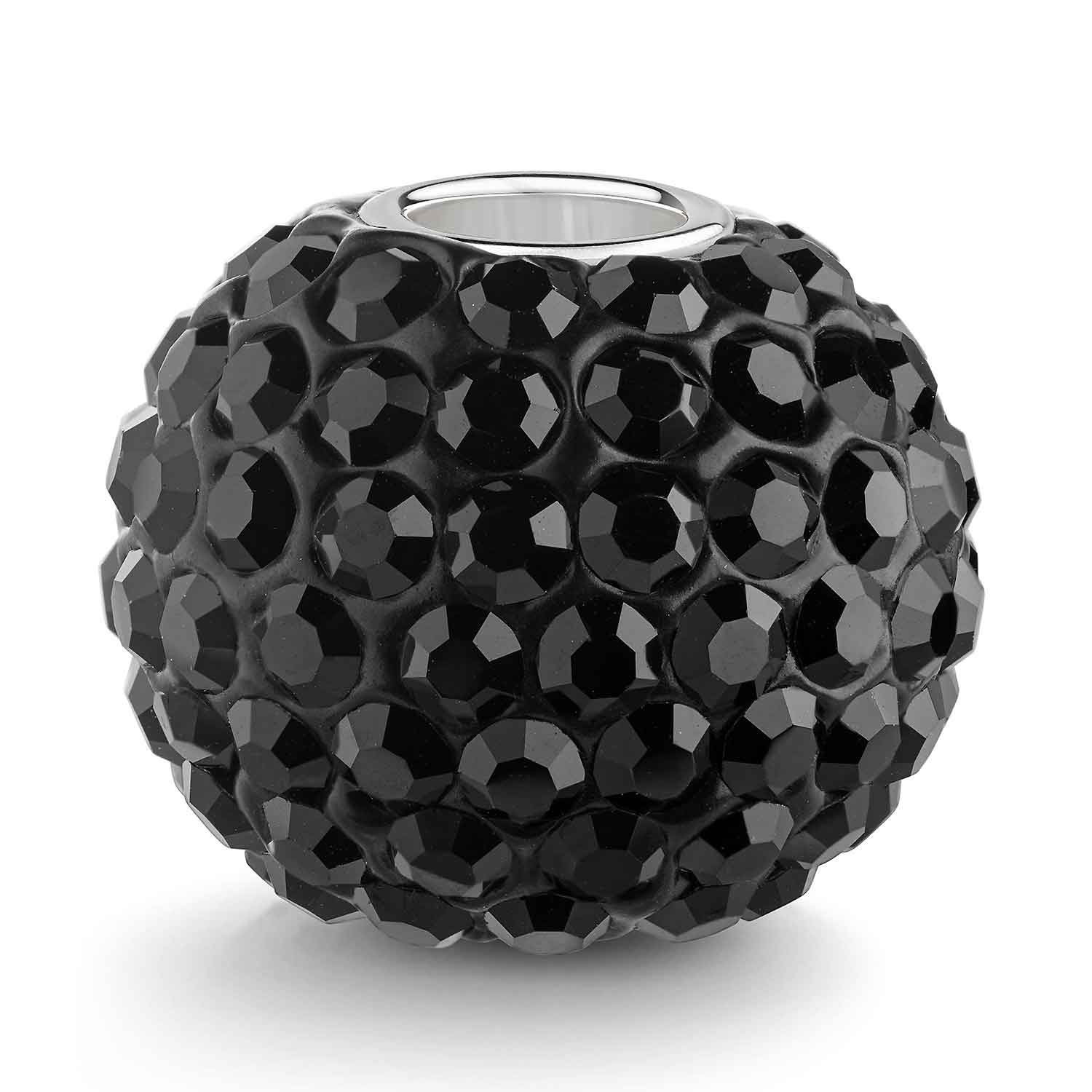 Eleganter schwarzer Bead mit zahlreichen Strasssteinen und einer Hülse aus massivem 925 Sterling Silber. Der Schmuck Anhänger macht durch seine vielen funkelnden Steinchen einen besonders eleganten Eindruck.