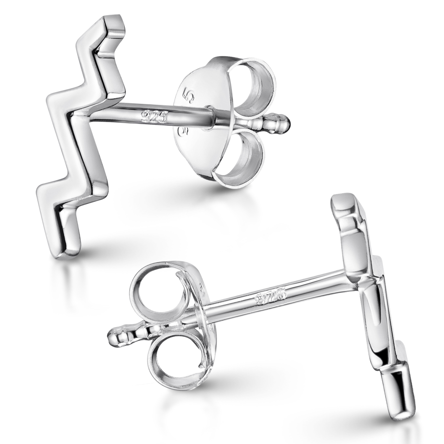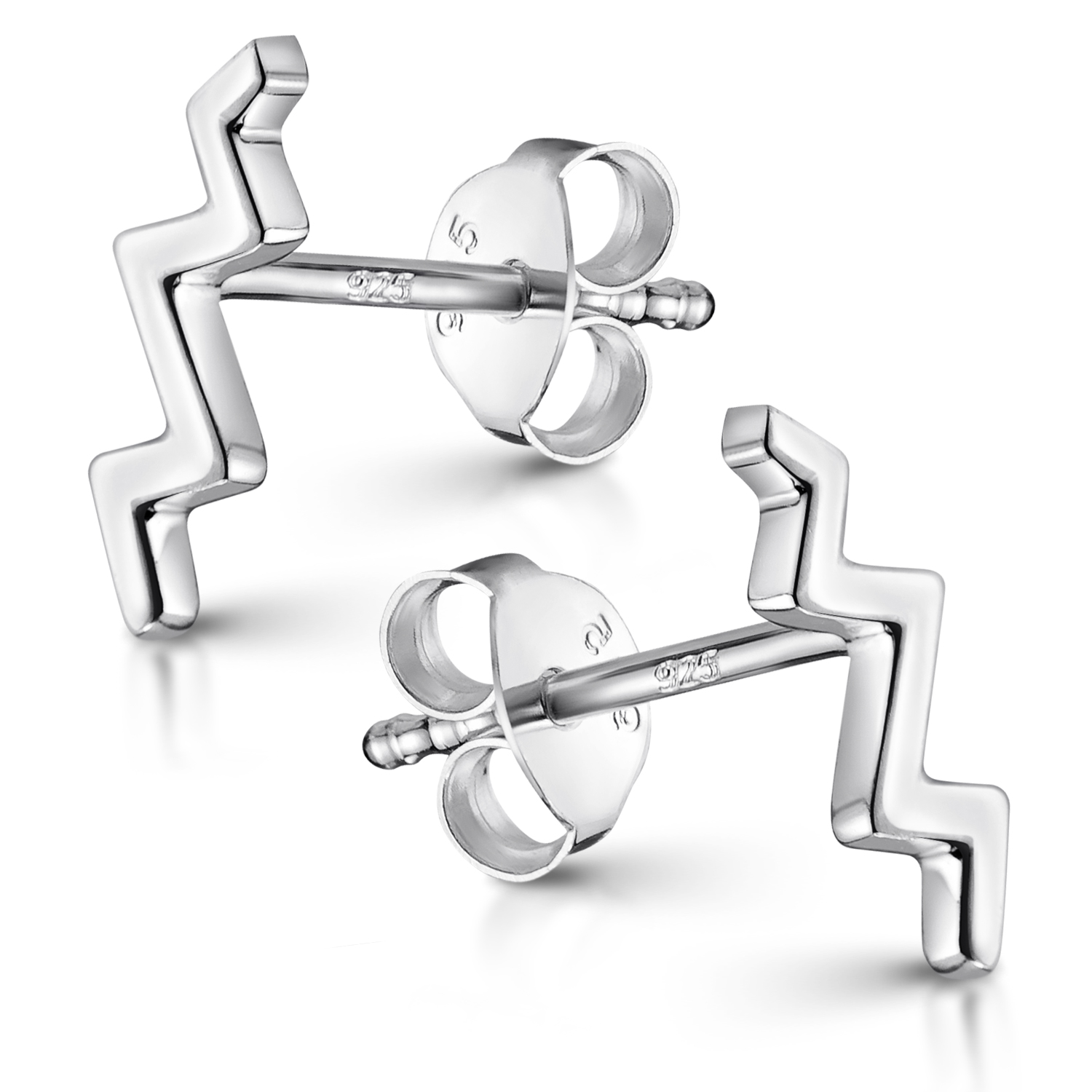 Zarte Ohrstecker in ZickZack Form aus 925 Sterling Silber. Die kleinen Ohrringe eigenen sich auch ideal für das zweite oder dritte Ohrloch.