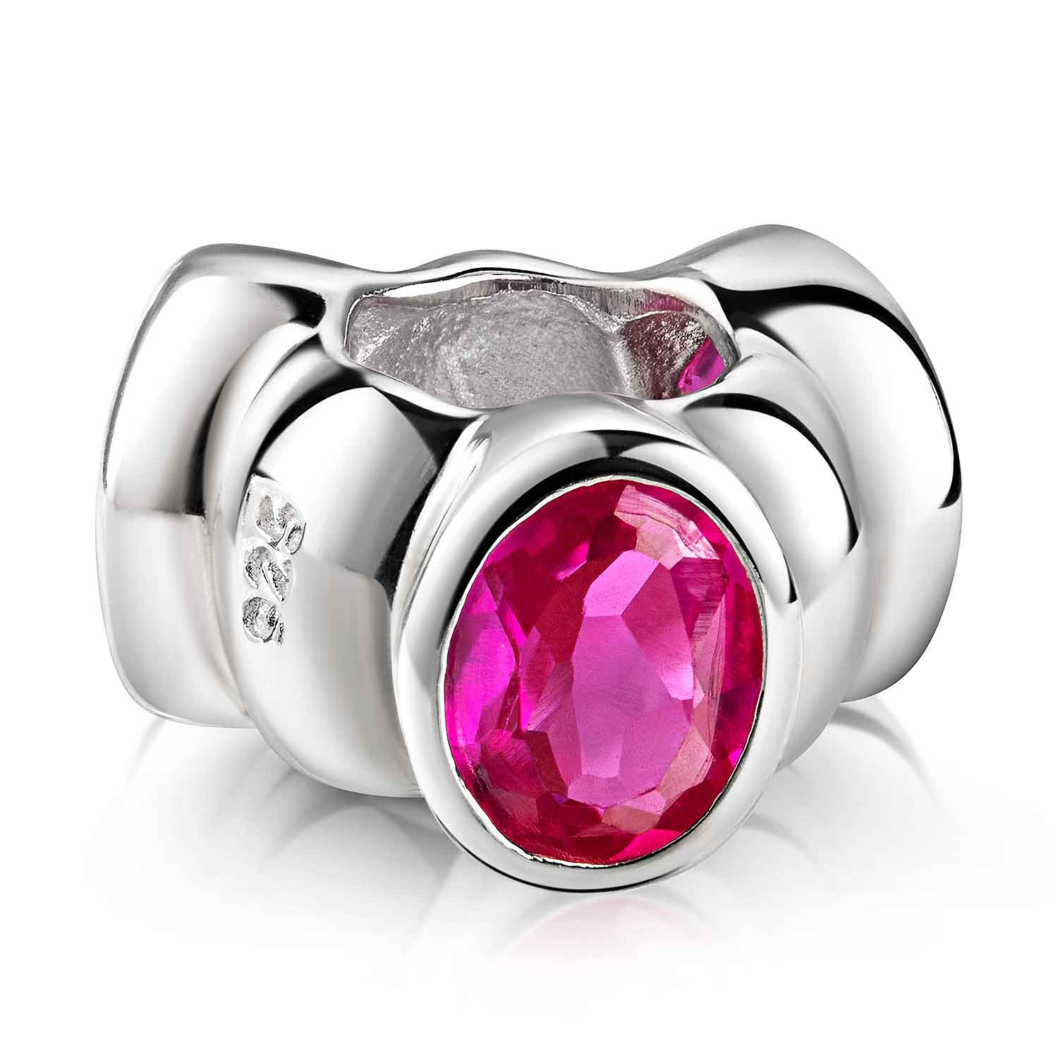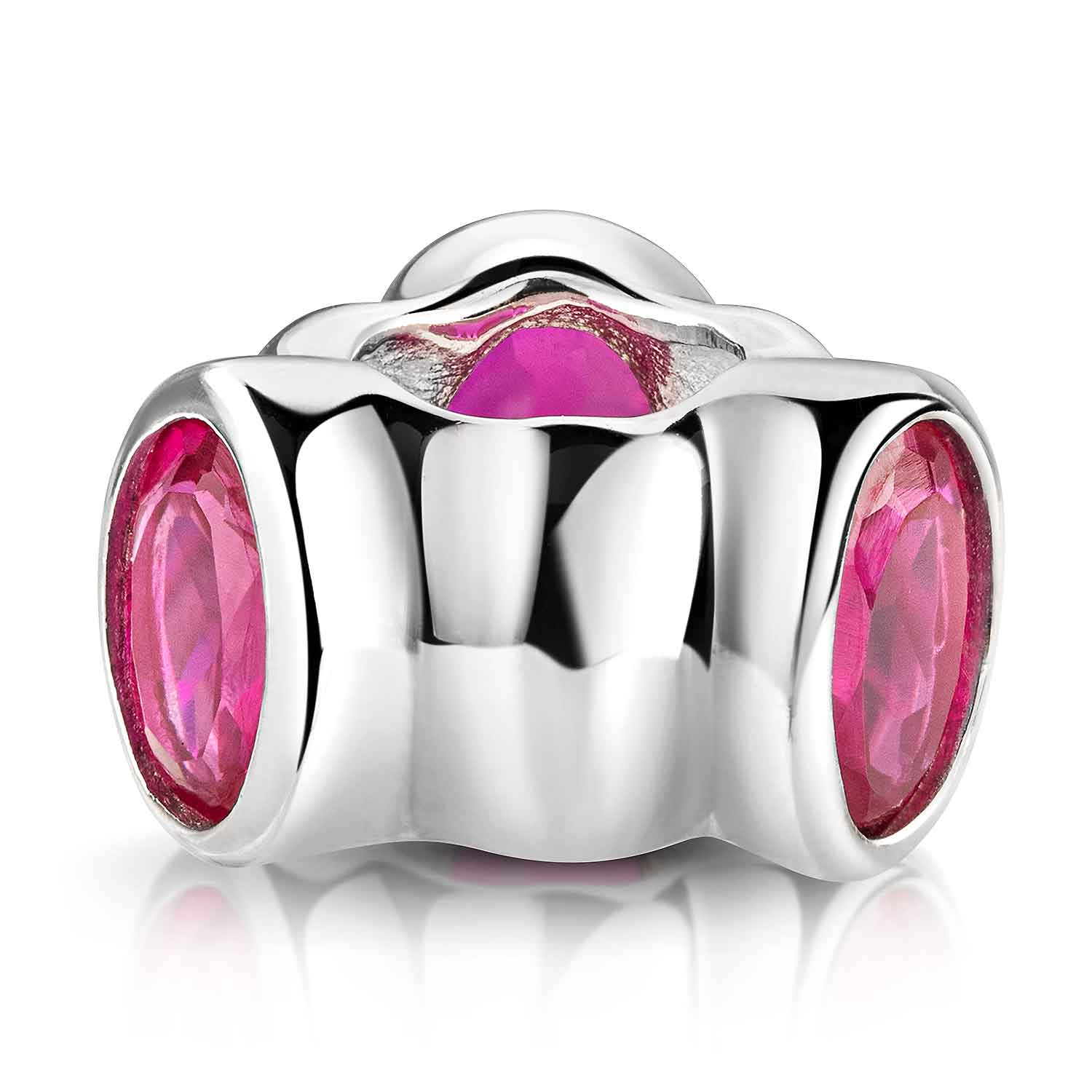 Eleganter Bead Anhänger aus massivem 925 Sterling Silber. Der Bead ist mit 3 pinken Zirkonia im Brillantschliff in einer edlen Ovalfassung besetzt. Er zeichnet sich durch hochwertige Qualität und einzigartiges Design aus. Der Anhänger ist kompatibel mit allen gängigen Beads Armbändern und Ketten bis max. 4,4mm Durchmesser und ist daher für alle Marken Beads geeignet.