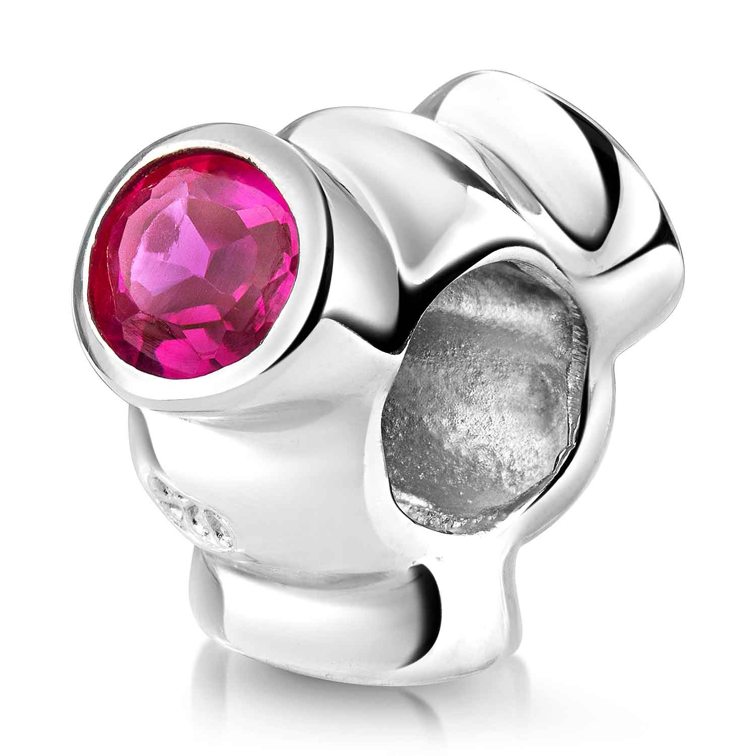 Prächtiger Bead Anhänger aus 925 Silber mit pinken Zirkonia Steinen. Der Anhänger passt auf alle Beads Armbänder und Ketten mit einer max. Stärke von 4,4mm.