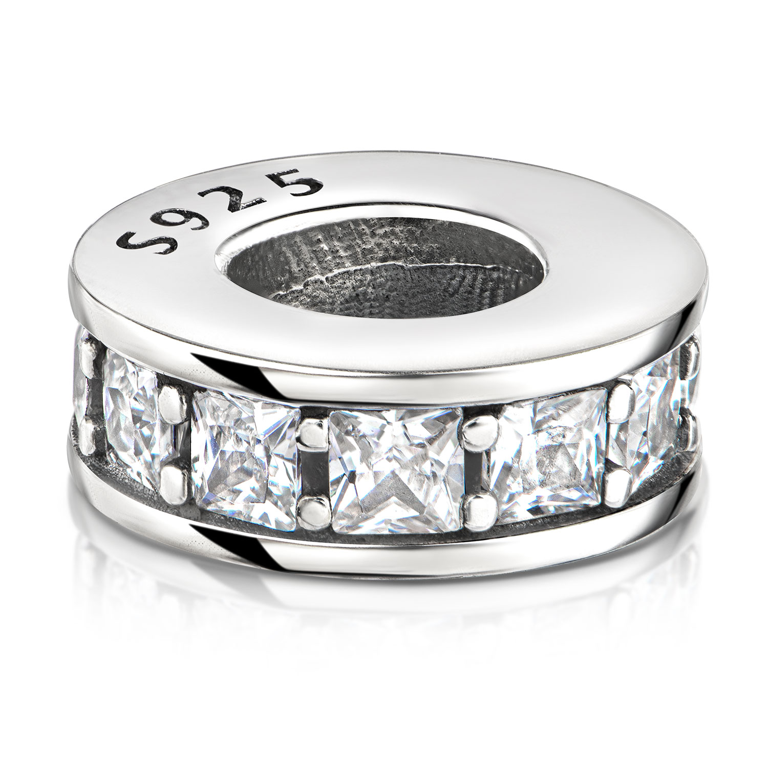 Silber Bead mit weißen Zirkonia Steinen in edler Zargenfassung aus 925 Sterling Silber, geeignet für alle Beads Armbänder und Ketten bis 4,3mm Stärke.