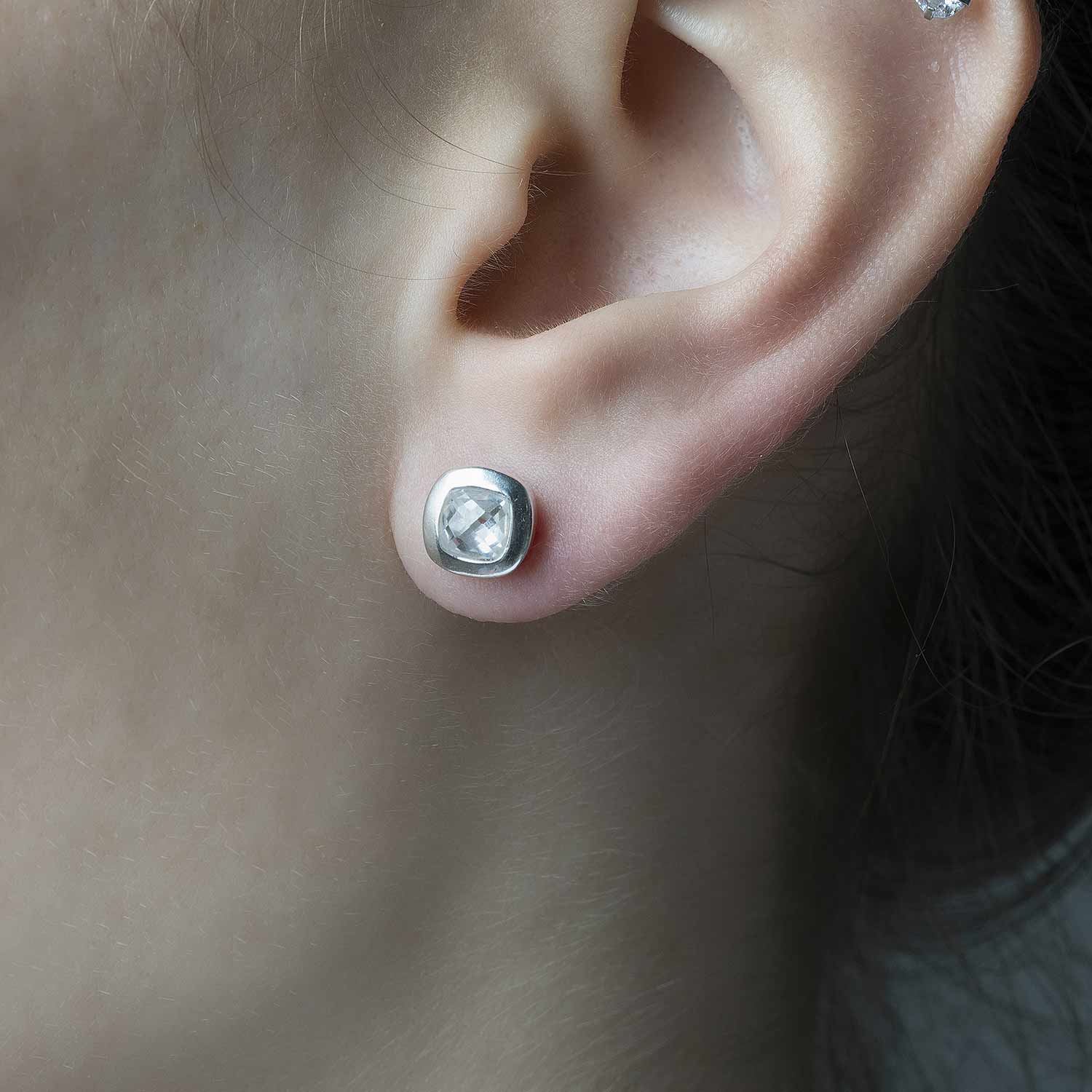 Zarter Ohrschmuck der jeden Look aufwertet: Unsere Ohrringe in quadratischer Form mit facettierten Zirkonia Steinen bringen Glanz in deinen Look.