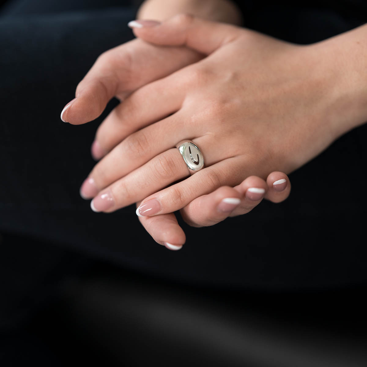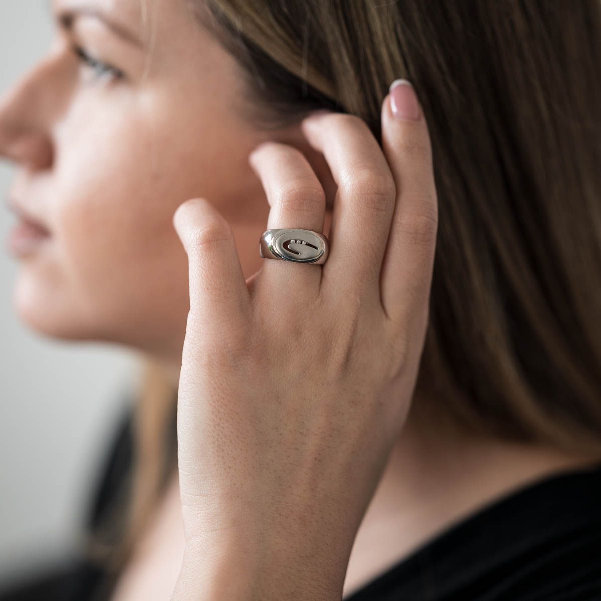 Edler Zirkonia Ring mit ovalem Ringkopf aus 925 Sterling Silber, gefertigt in erfahrener Silberschmiede. Die Machart ist massiv und schlicht, während 3 kleine Zirkonia feine Akzente auf dem Ringkopf setzen. Das Schmuckstück wurde rhodiniert und satiniert, wodurch er zusätzlich gegen ein Anlaufen des Silbers geschützt ist. Lieferung erfolgt in einer schwarzen Materia Schmuckbox und eignet sich somit bestens als Geschenk.