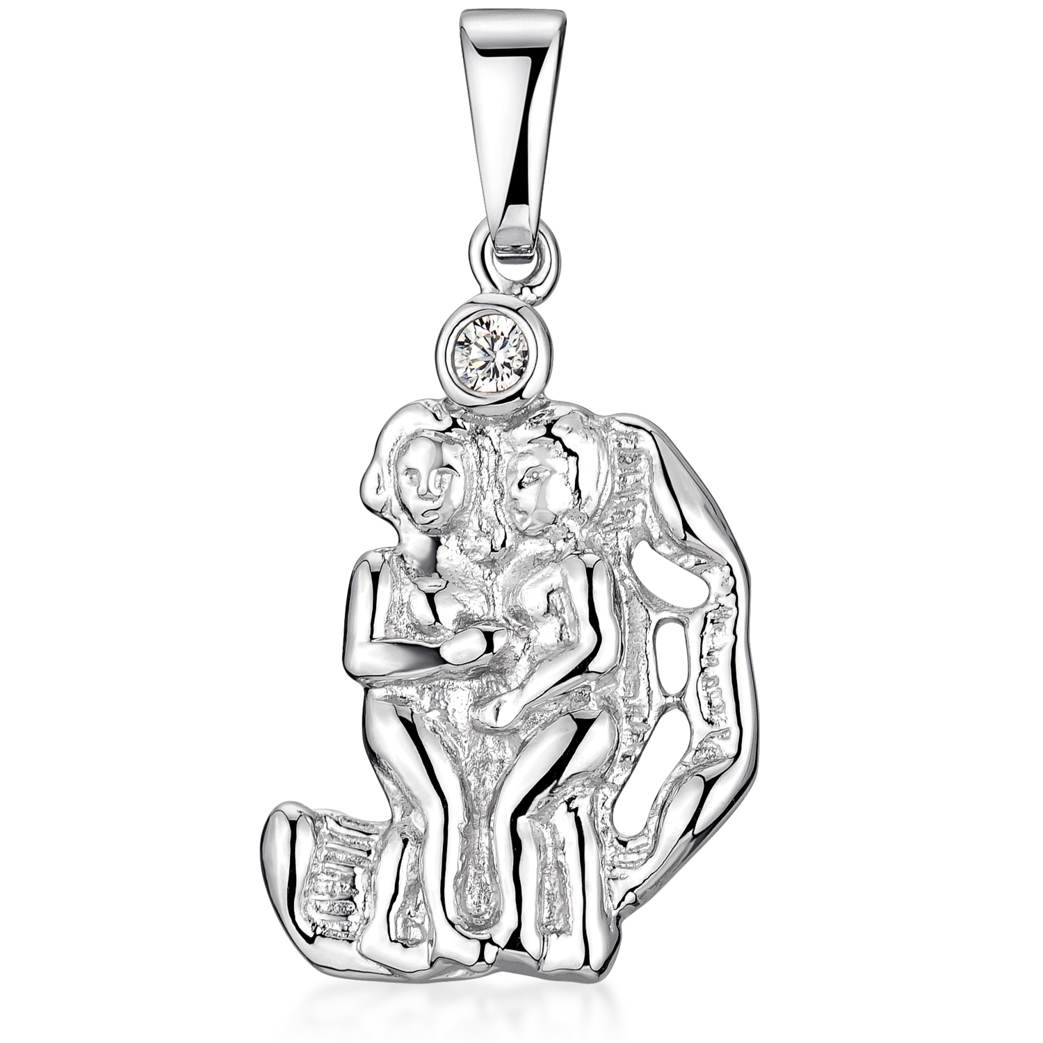 Sternzeichen Anhänger Zwillinge aus 925 Sterling Silber mit einem Zirkonia Stein.